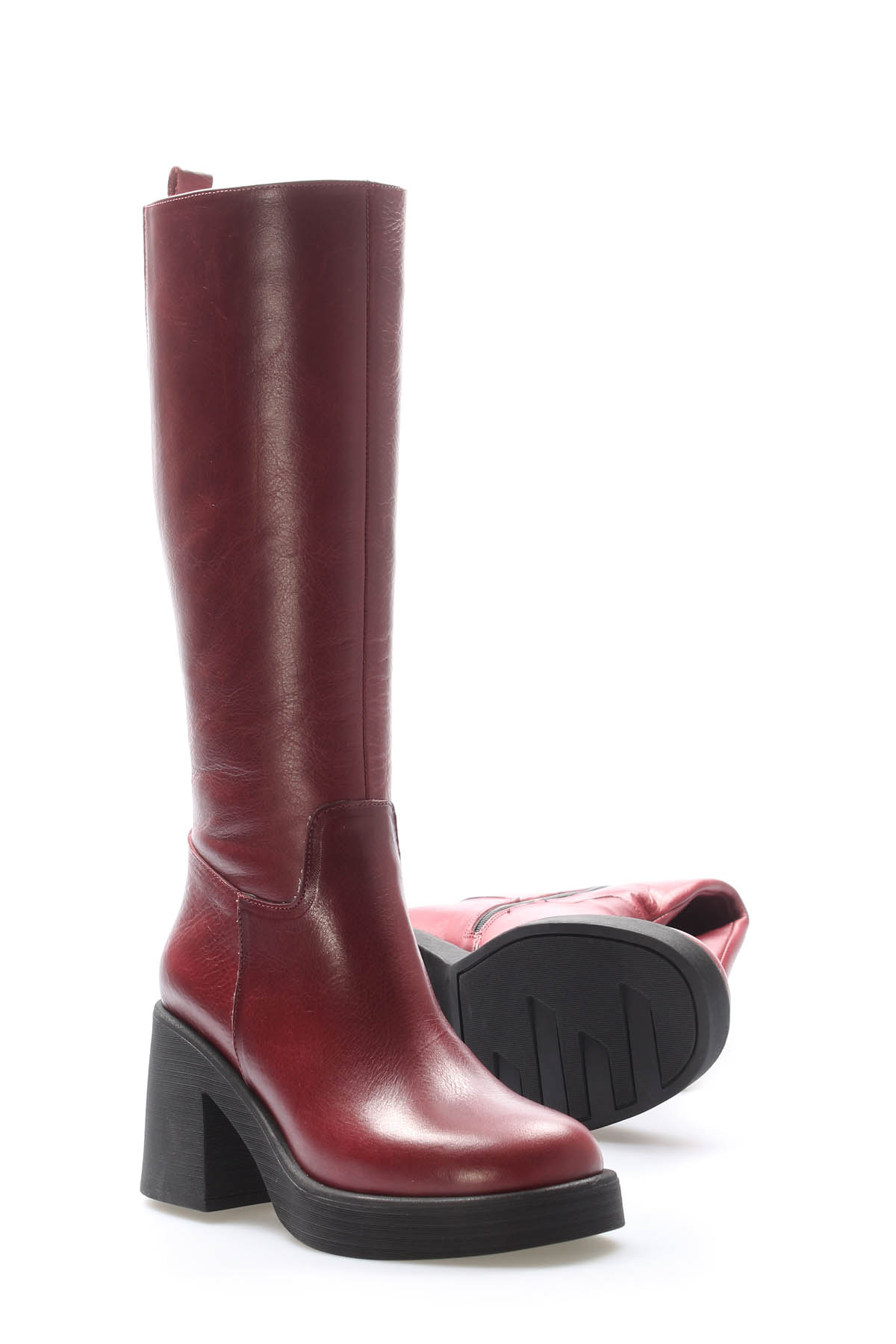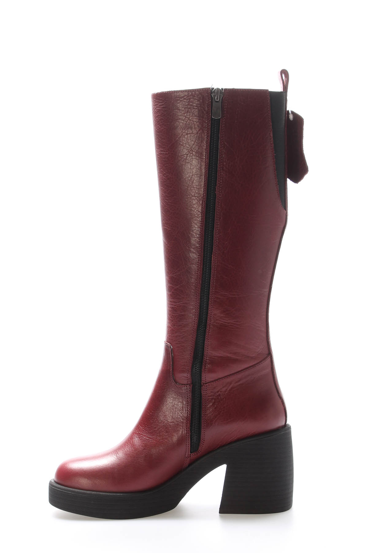 Kadın Çizme MirgeShoes Bordo Kadın Klasik Çizme İçi Yarım Kürklü Dışı Hakiki Deri MRG013472526166220