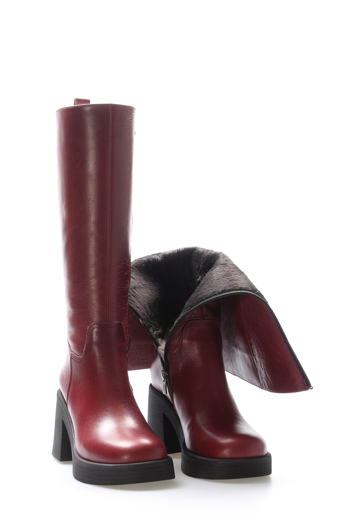 MirgeShoes Bordo Kadın Klasik Çizme İçi Yarım Kürklü Dışı Hakiki Deri MRG013472526166220