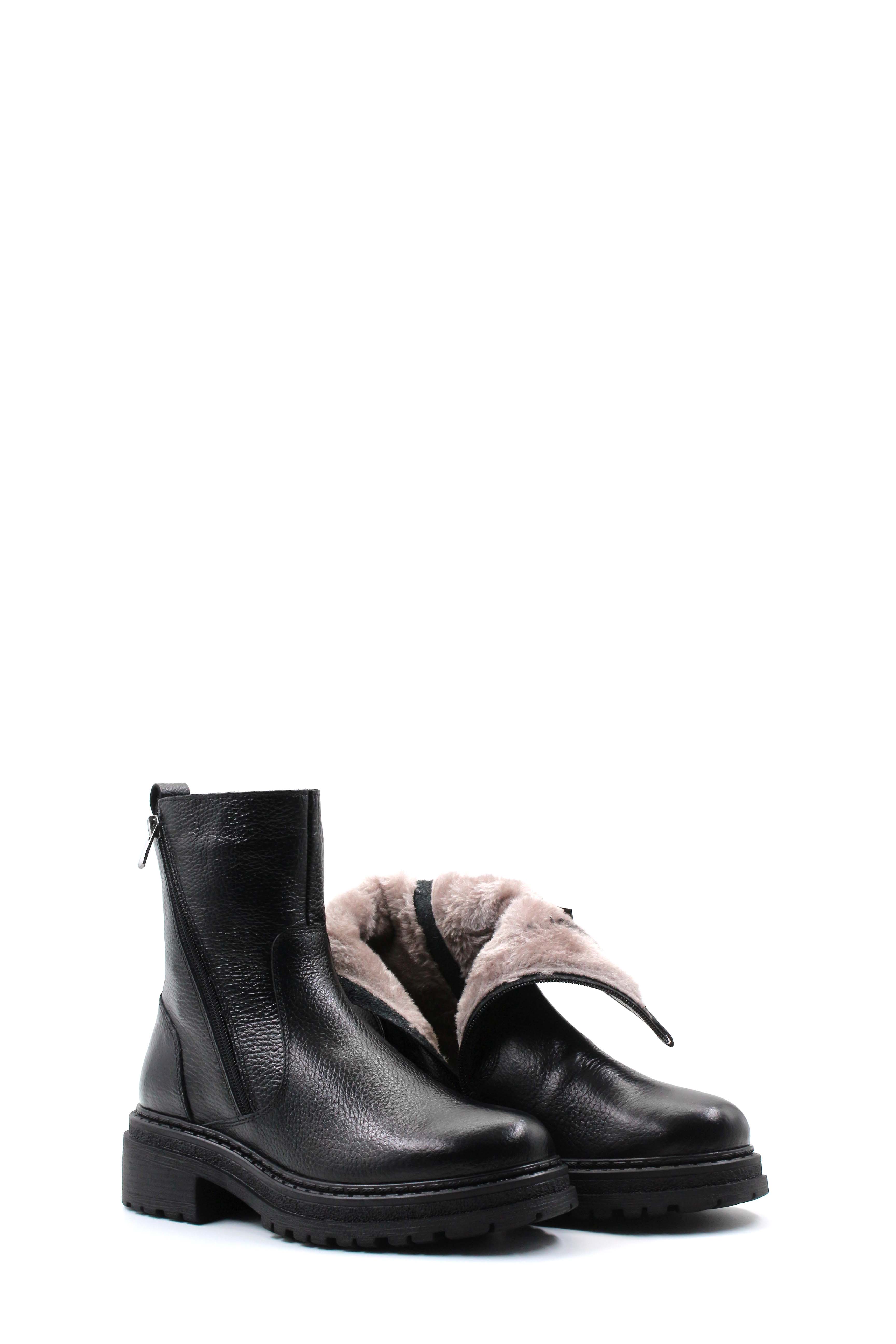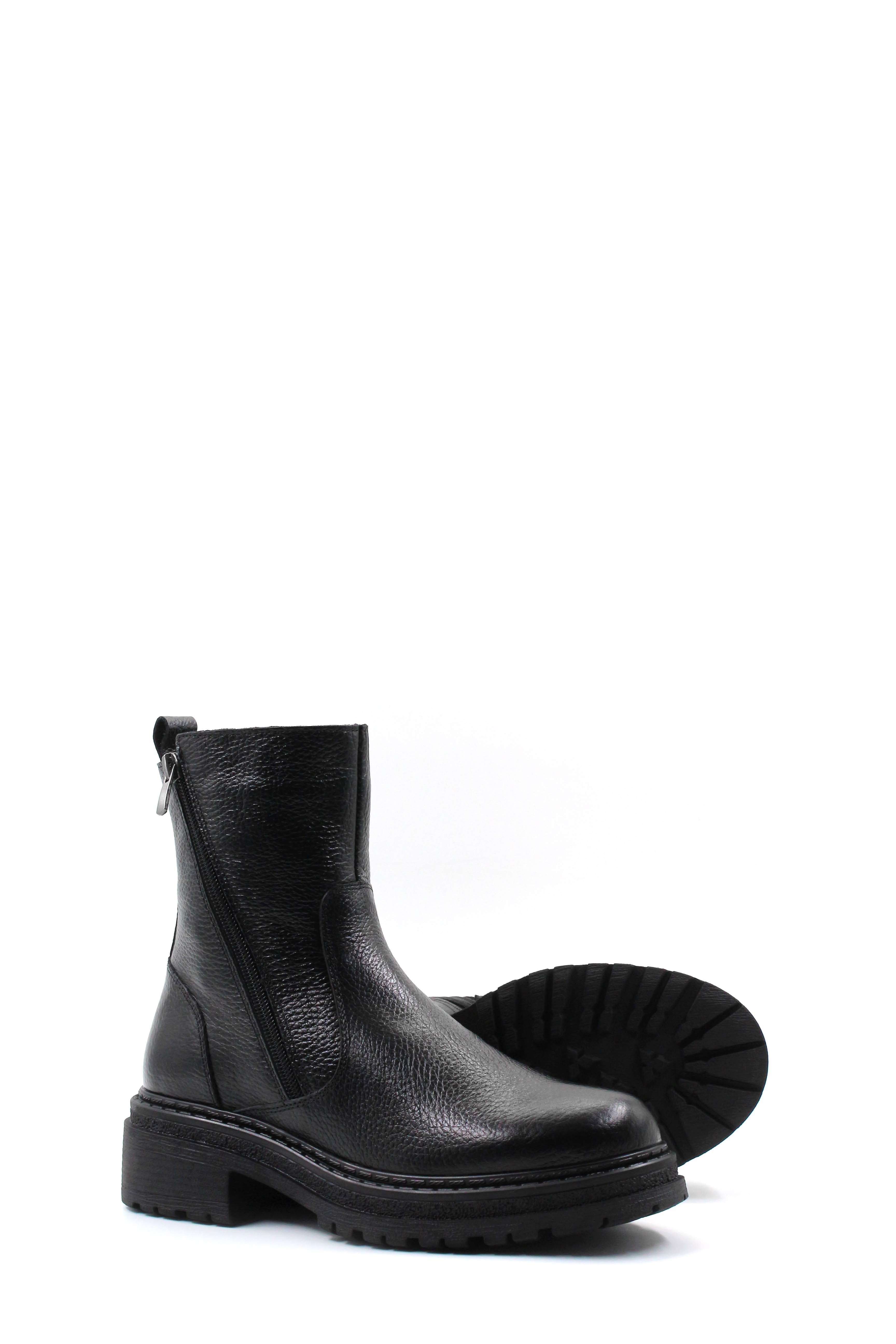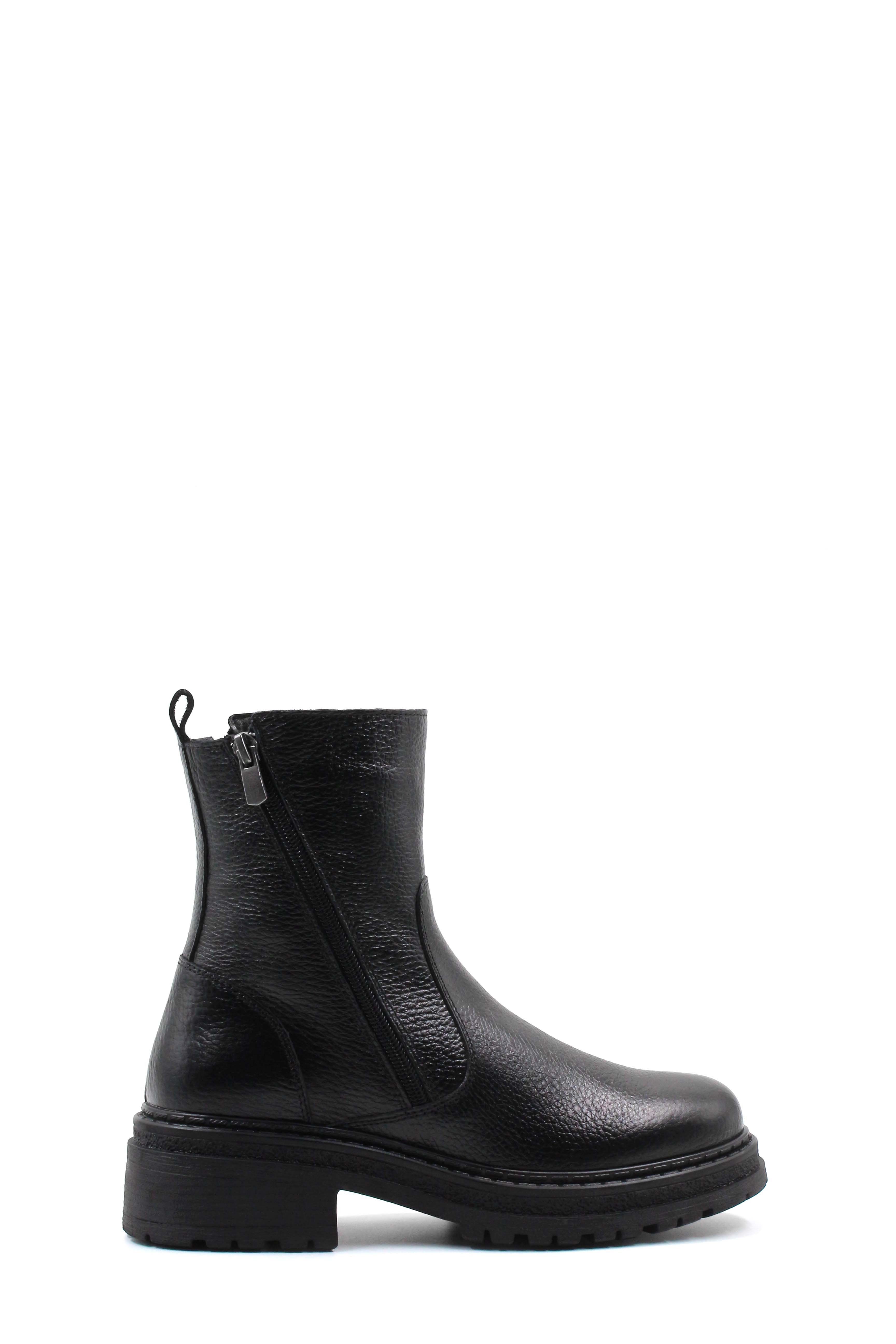 • MirgeShoes Siyah Fermuarlı Kadın Kalın Taban Bot Kaliteli Hakiki Floter Deri MRG0138719261840