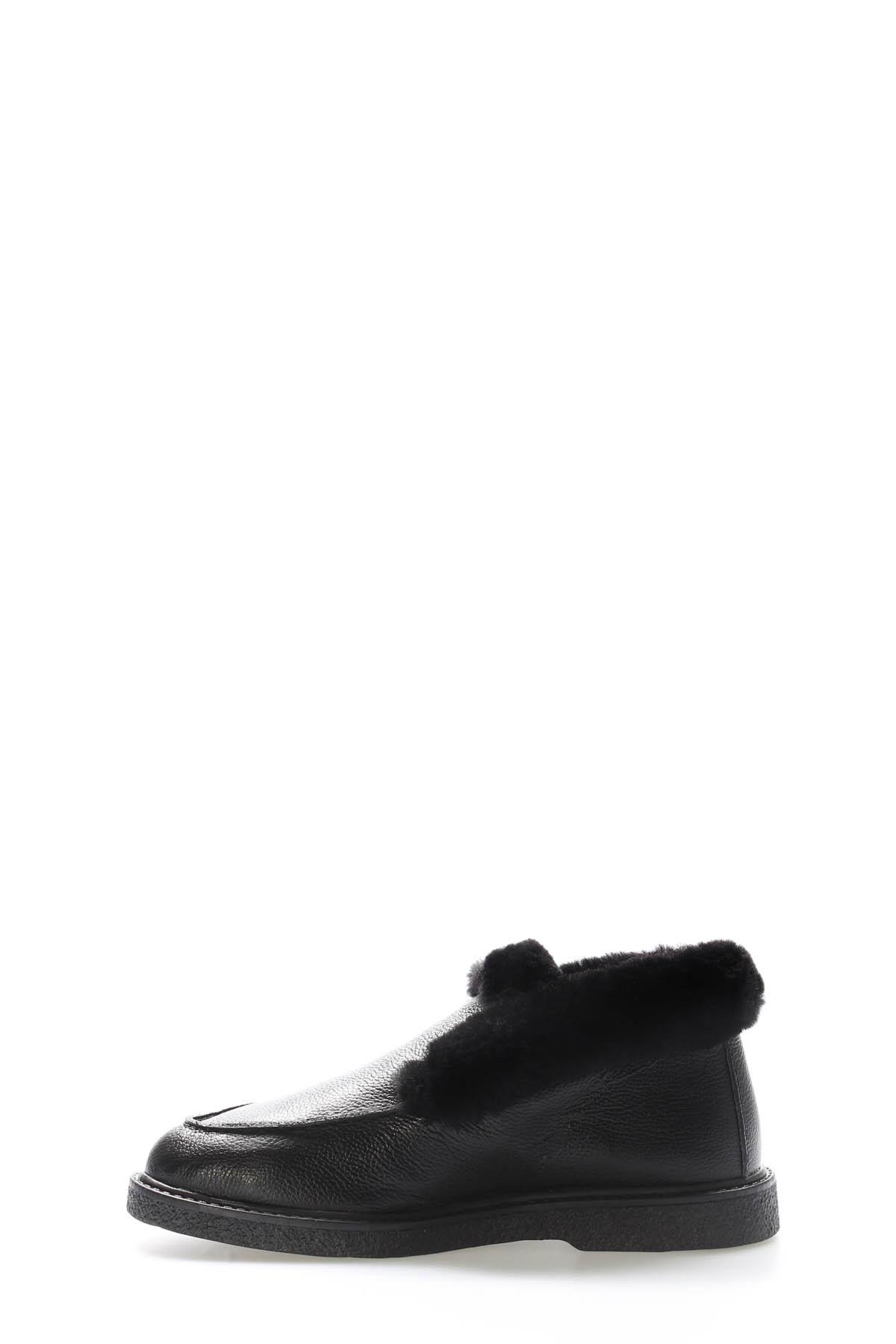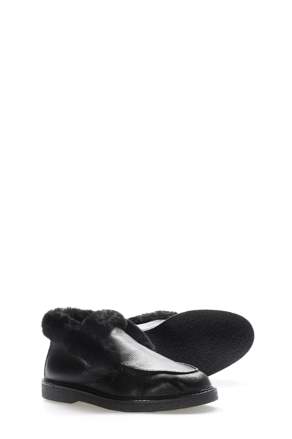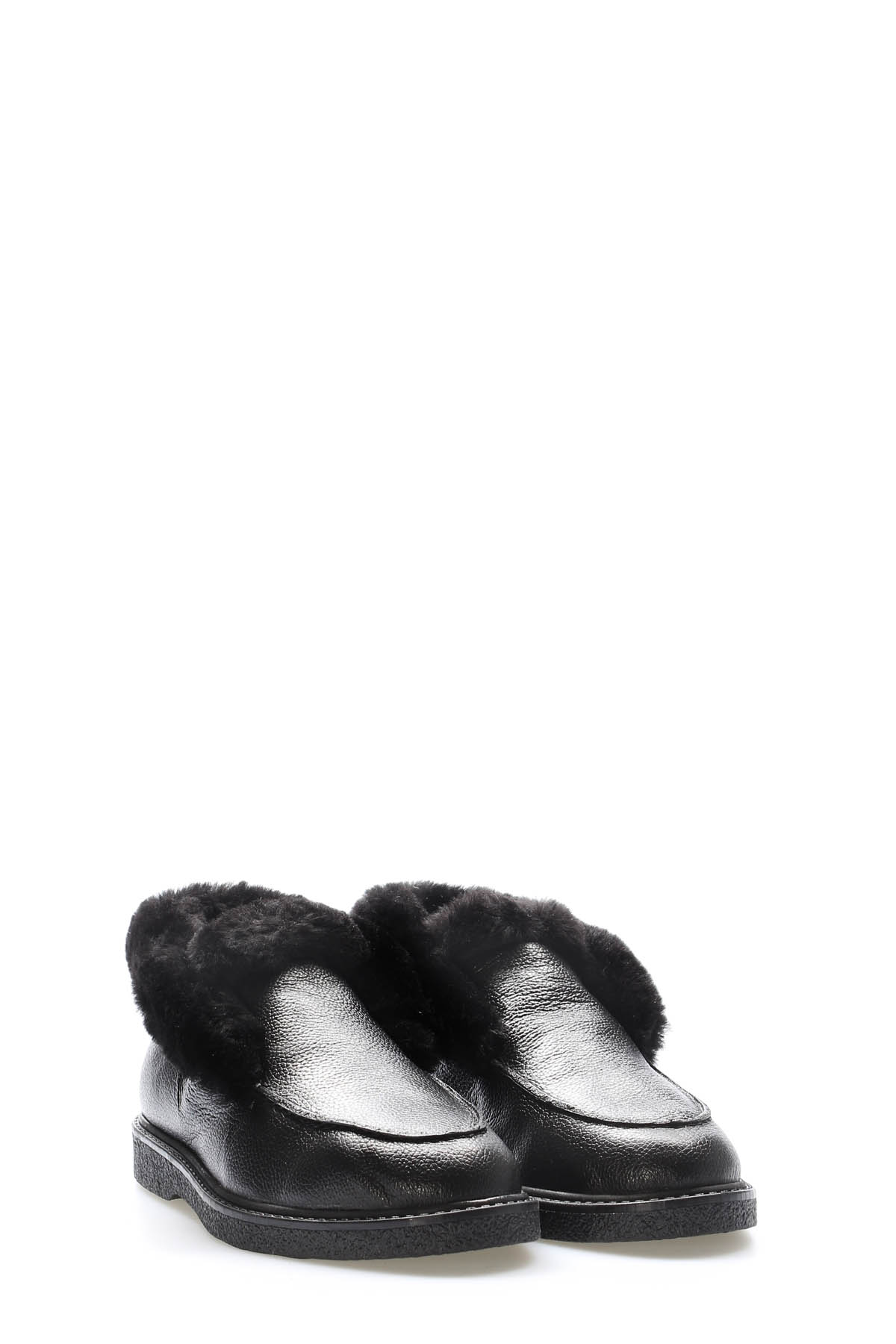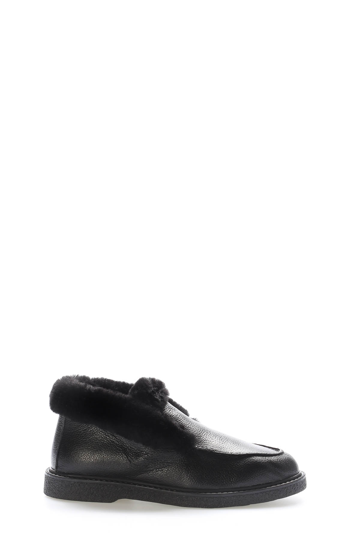 MirgeShoes Siyah Bağcıksız Kadın Spor Bot İçi Kürklü Dışı Hakiki Floter Deri MRG0186311261434