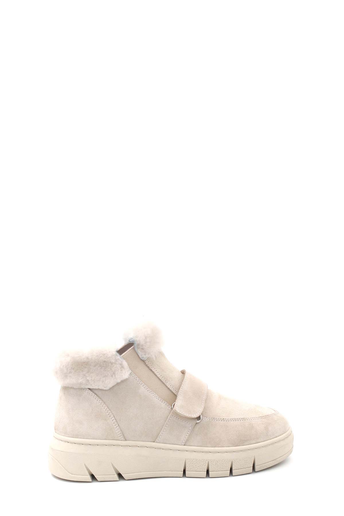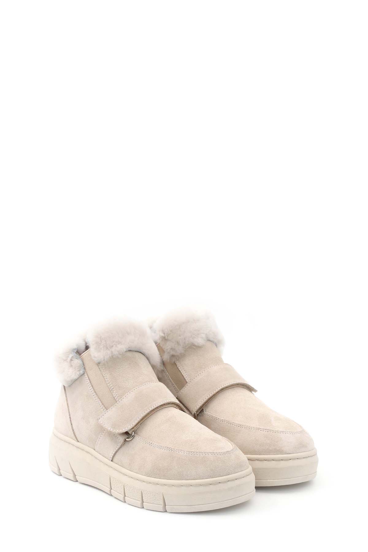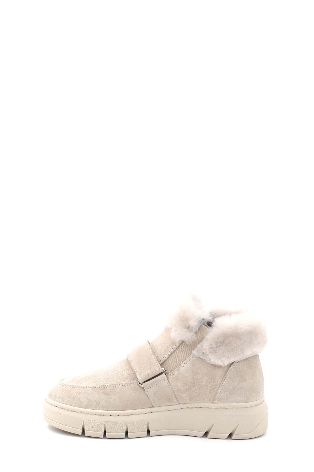 • MirgeShoes Bej Bantlı Kadın Bot İçi Kürklü Dışı Hakiki Süet Deri MRG011046112613917
