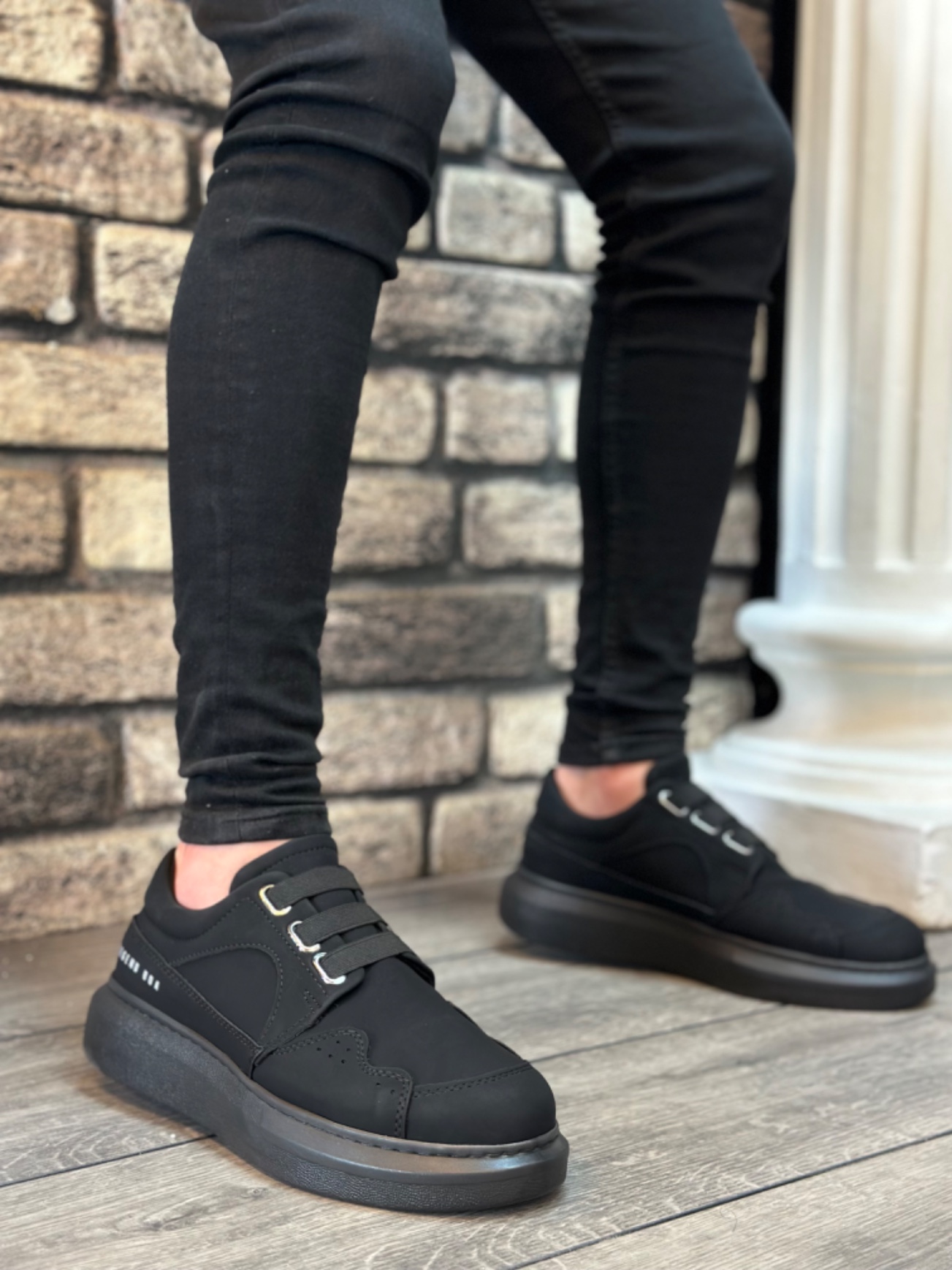 Tarz Erkek Ayakkabı Erkek Spor MirgeShoes Siyah Bağcıksız Erkek Casual Ayakkabı Kemerli Kalın Yüksek SYH Taban MRG010602620