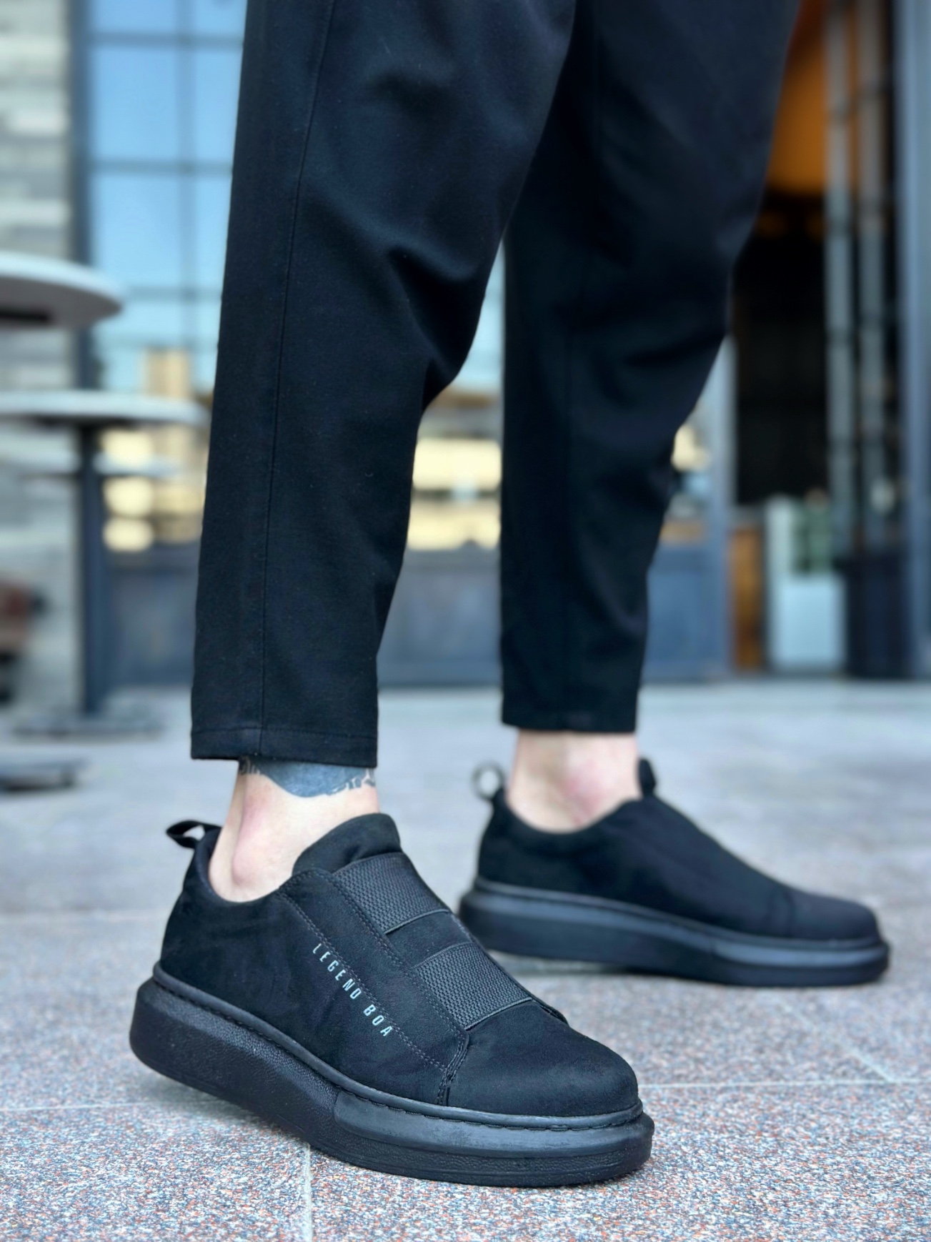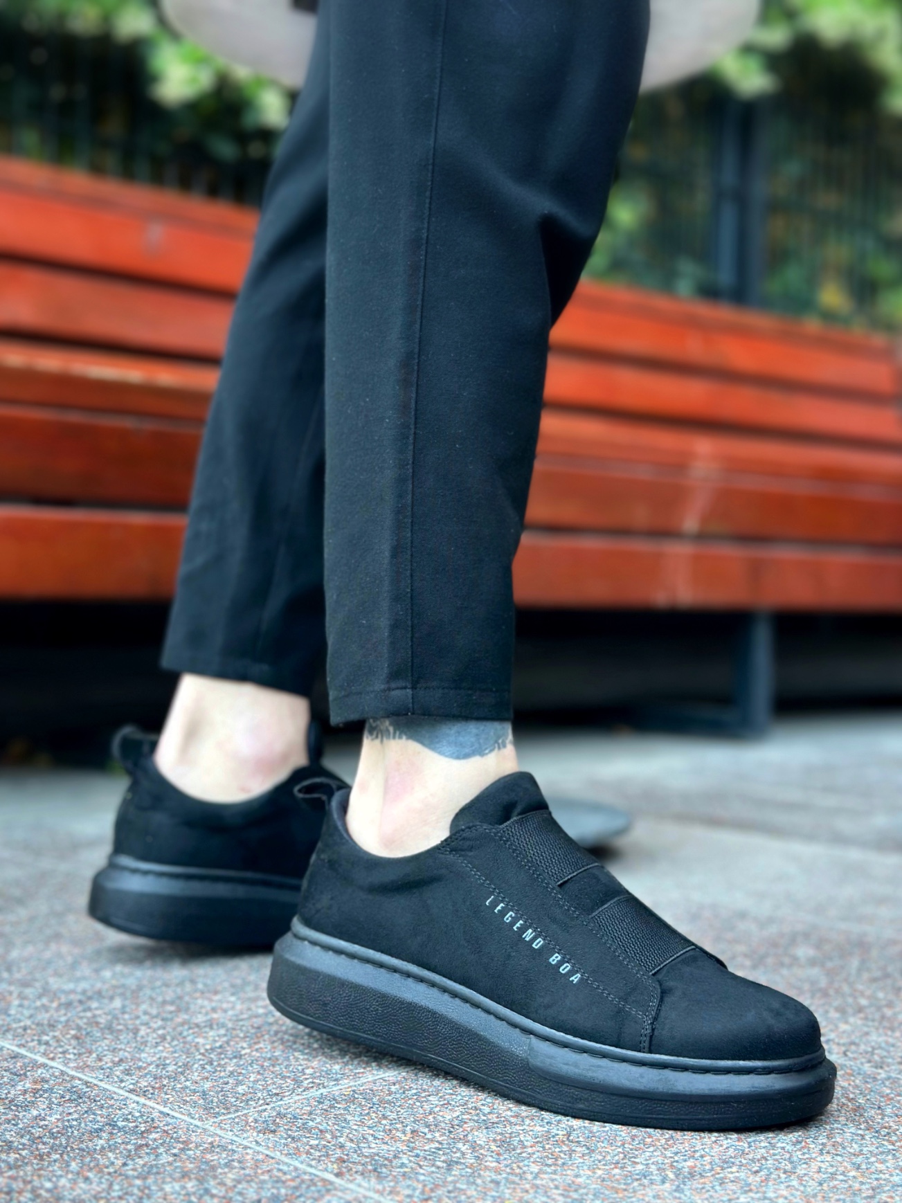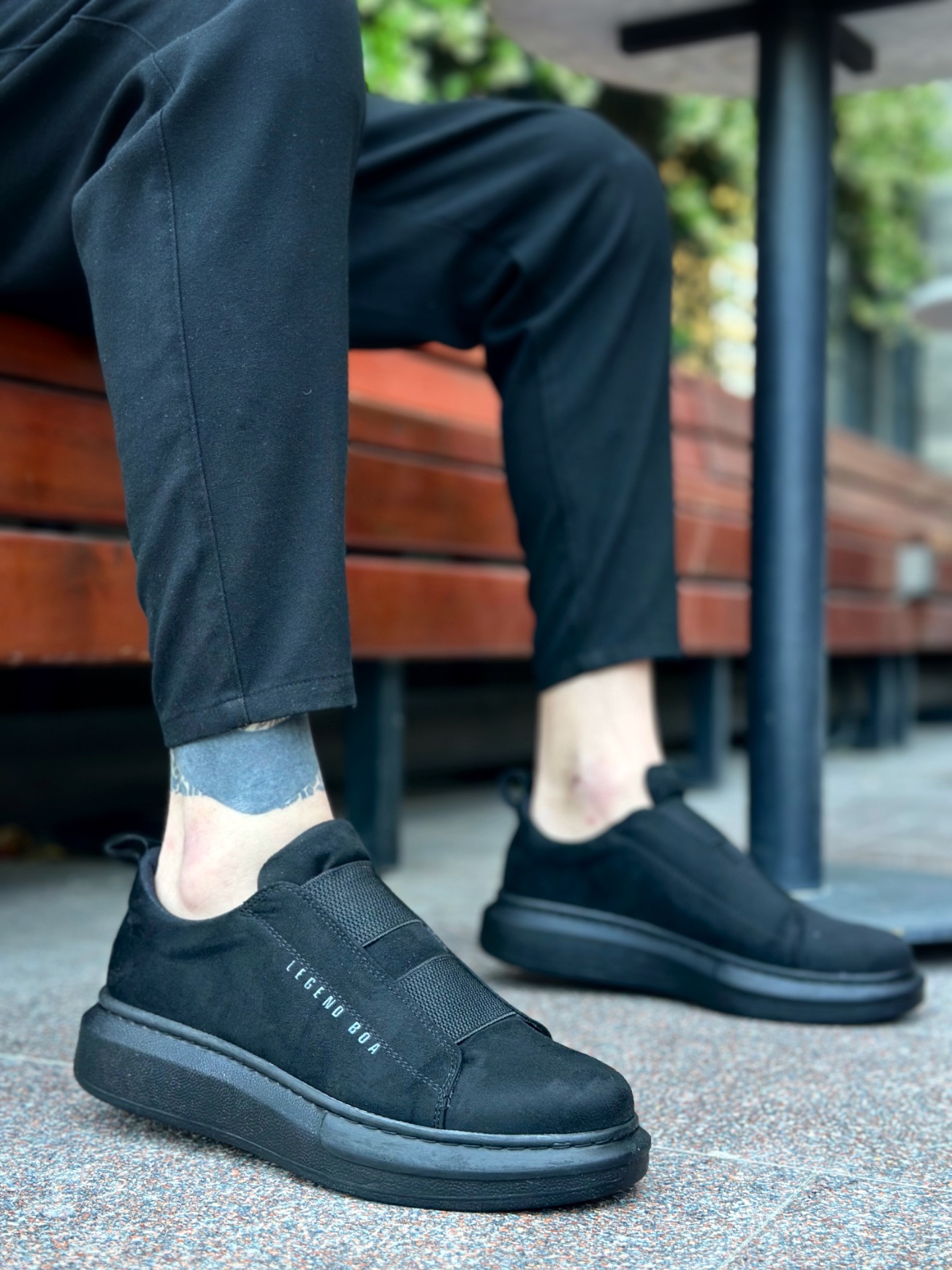 Tarz Erkek Ayakkabı Erkek Spor MirgeShoes Siyah Çift Bantlı Erkek Tarz Ayakkabı Süet Kalın Yüksek SYH Taban MRG010602625