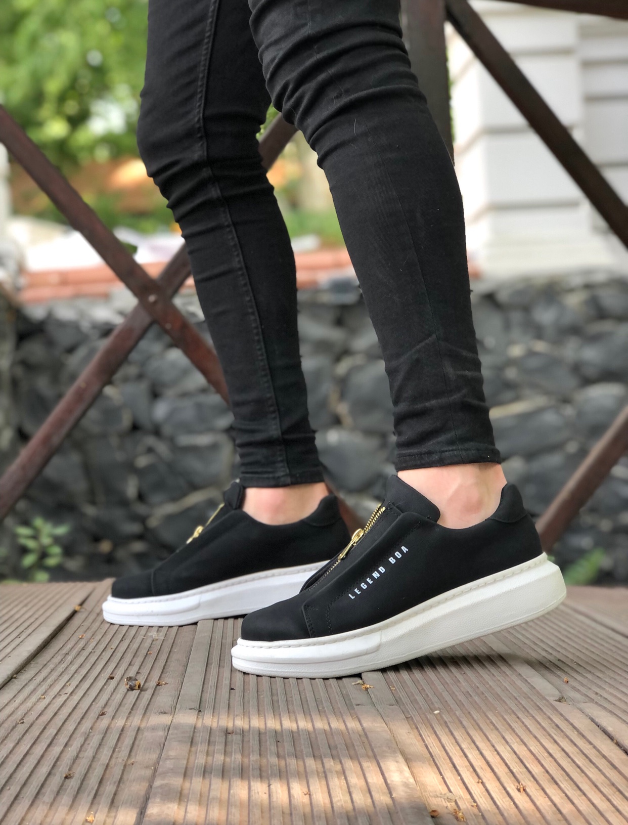 Tarz Erkek Ayakkabı Erkek Spor MirgeShoes Siyah Fermuarlı Erkek Tarz Ayakkabı Cilt Yüksek Kalın BYZ Taban MRG010602628