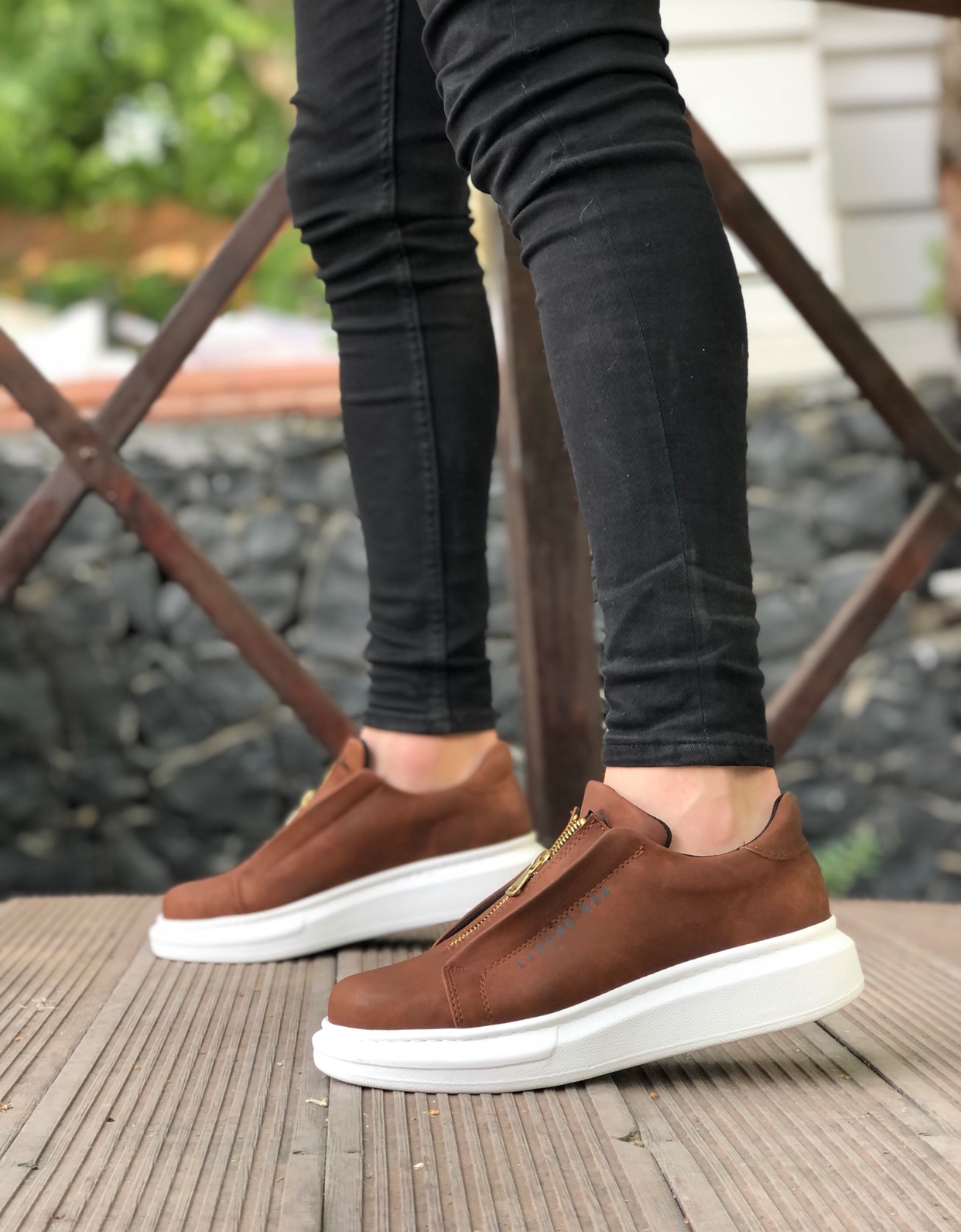 Tarz Erkek Ayakkabı Erkek Spor MirgeShoes Taba Fermuarlı Erkek Tarz Ayakkabı Cilt Yüksek Kalın BYZ Taban MRG010602628