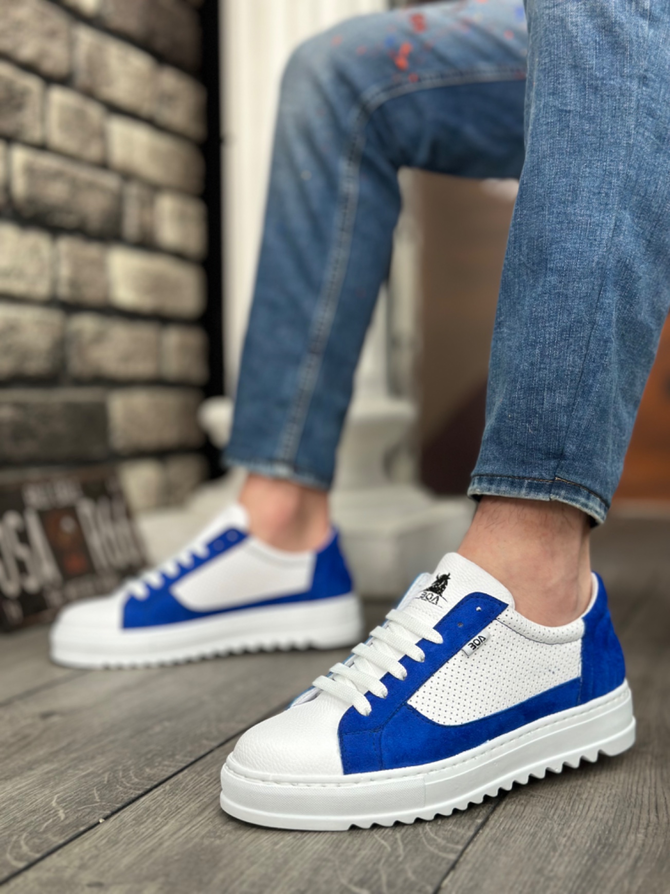 Tarz Erkek Ayakkabı Erkek Spor MirgeShoes Beyaz-Mavi Bağcıklı Erkek Spor Ayakkabı Tırtıklı Kalın Yüksek BYZ Taban MRG010602641