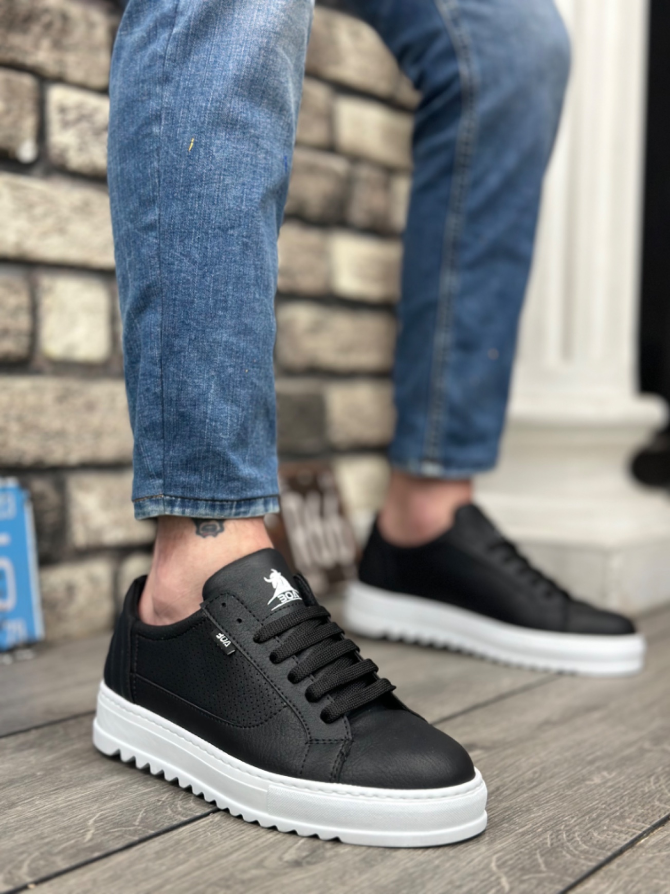 Tarz Erkek Ayakkabı Erkek Spor MirgeShoes Siyah Bağcıklı Erkek Spor Ayakkabı Tırtıklı Kalın Yüksek BYZ Taban MRG010602641