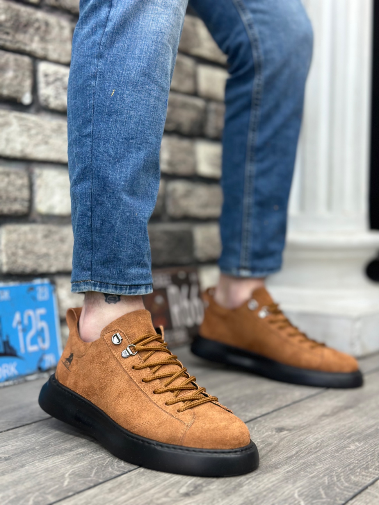 Tarz Erkek Ayakkabı Erkek Spor MirgeShoes Taba Bağcıklı Erkek Spor Ayakkabı Süet Yüksek Kalın SYH Taban MRG010602649