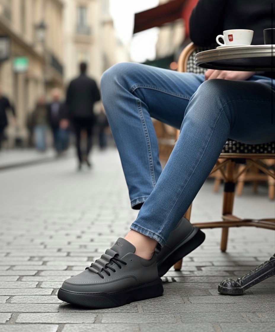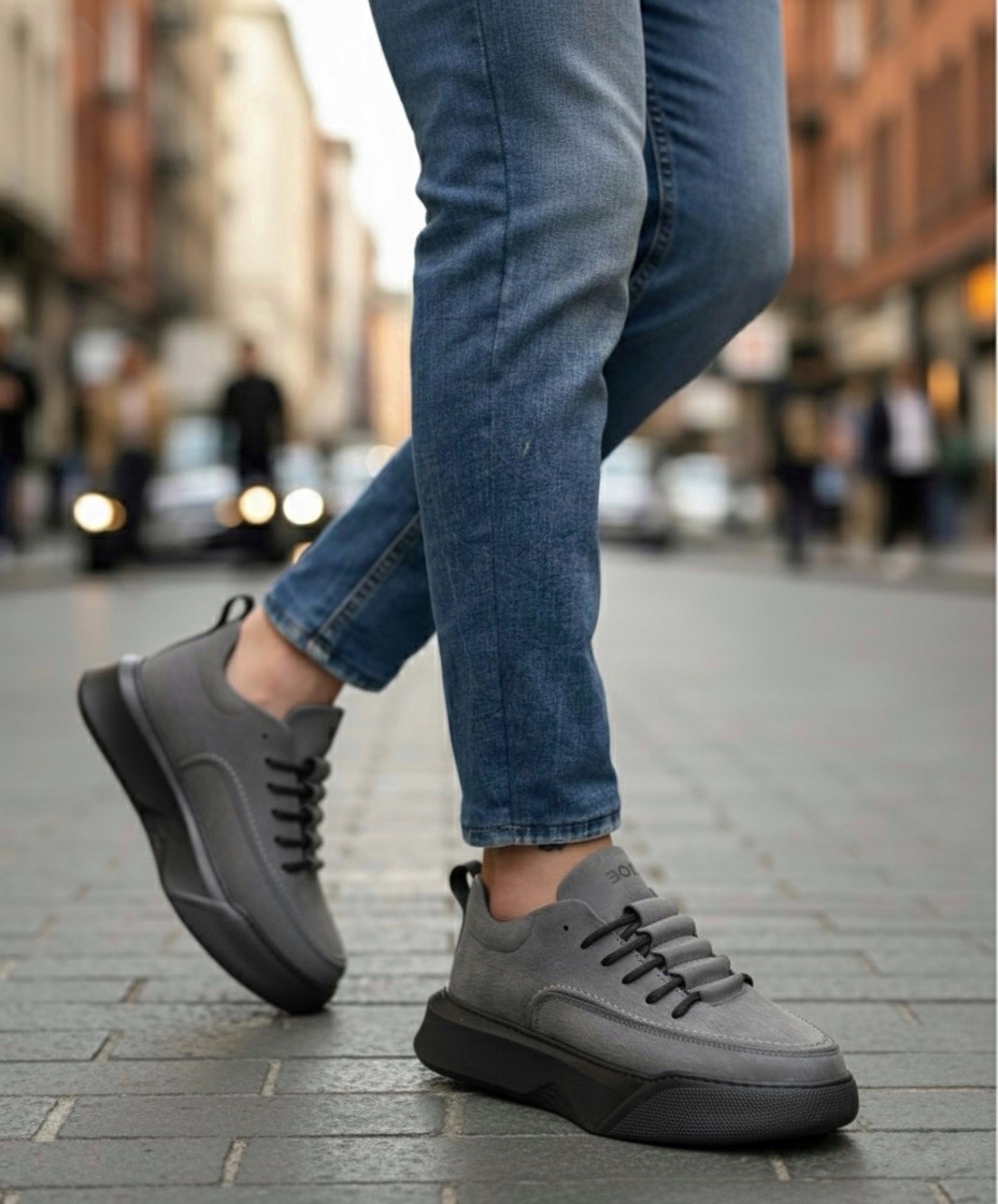MirgeShoes Füme Bağcıklı Erkek Spor Ayakkabı Cilt Deri Merdiven Desen Yüksek SYH Taban MRG010602650