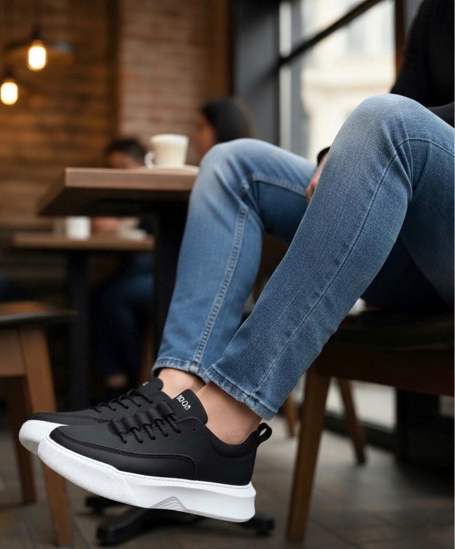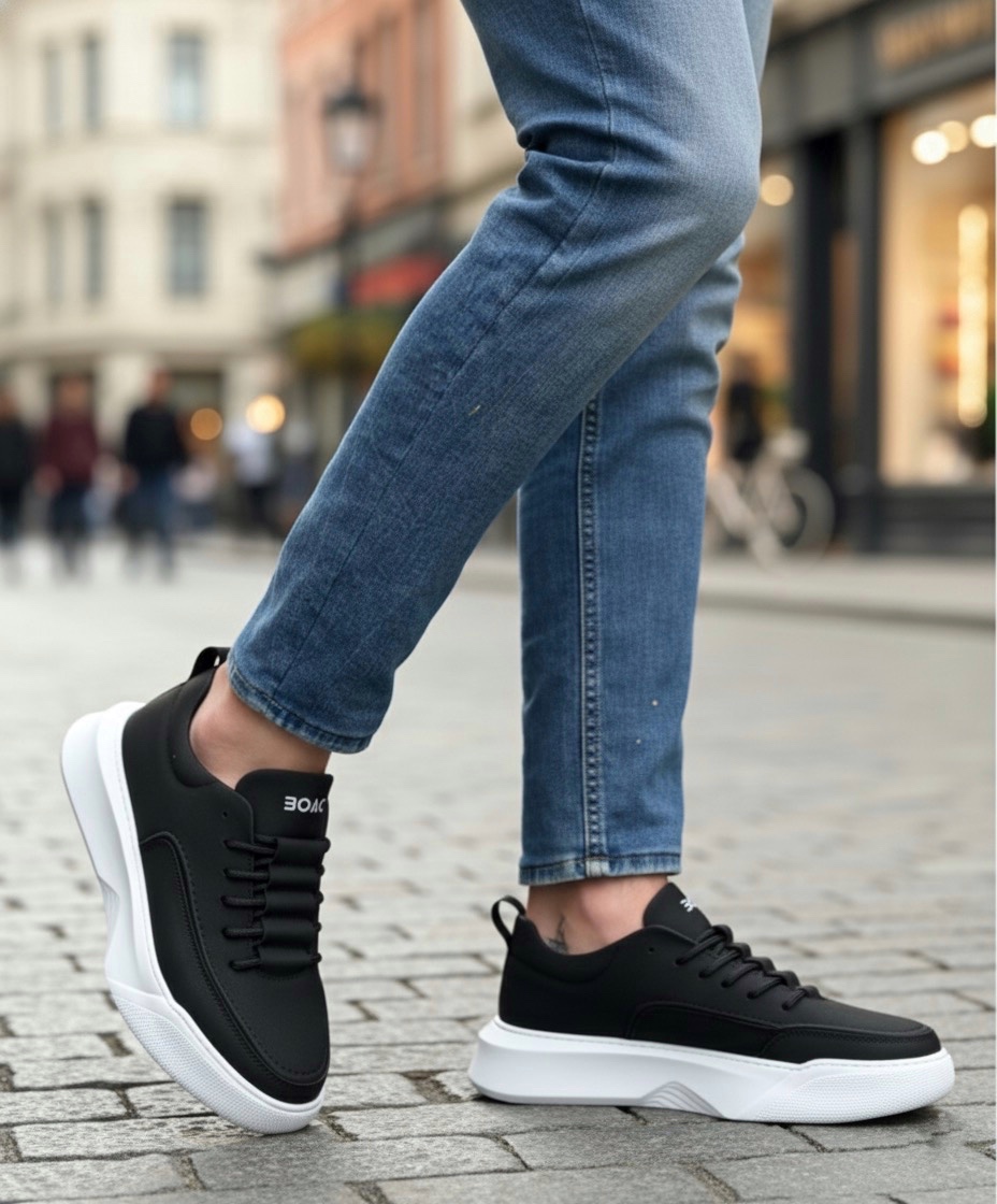 Tarz Erkek Ayakkabı Erkek Spor MirgeShoes Siyah Bağcıklı Erkek Spor Ayakkabı Merdiven Desen Yüksek BYZ Taban MRG010602650
