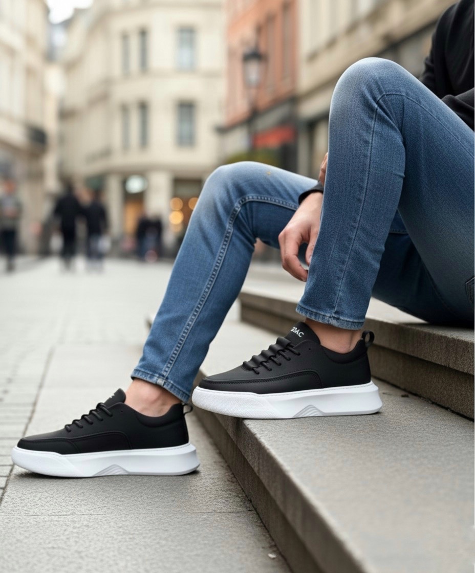 MirgeShoes Siyah Bağcıklı Erkek Spor Ayakkabı Merdiven Desen Yüksek BYZ Taban MRG010602650