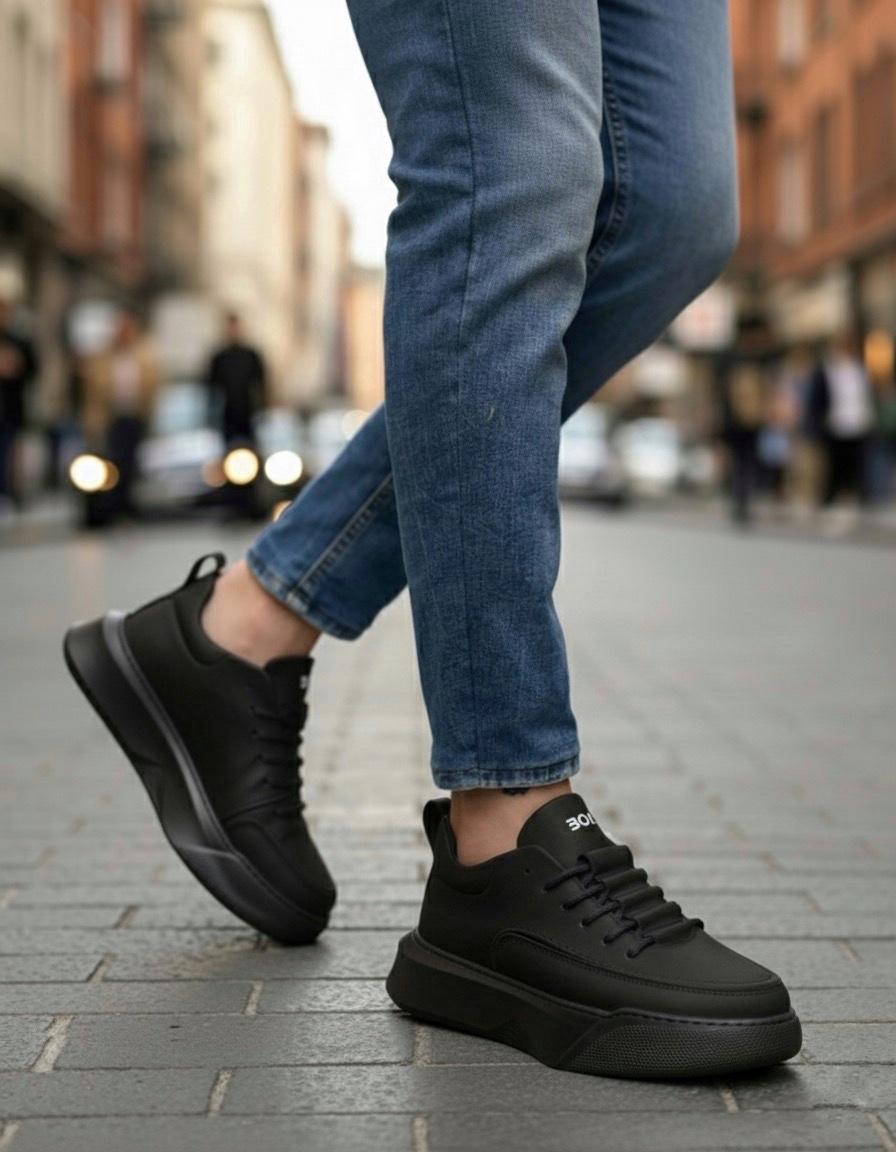 • MirgeShoes Siyah Bağcıklı Erkek Spor Ayakkabı Merdiven Desen Yüksek SYH Taban MRG010602650