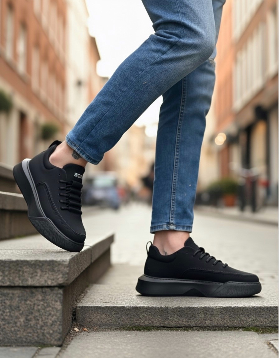 MirgeShoes Siyah Bağcıklı Erkek Spor Ayakkabı Merdiven Desen Yüksek SYH Taban MRG010602650