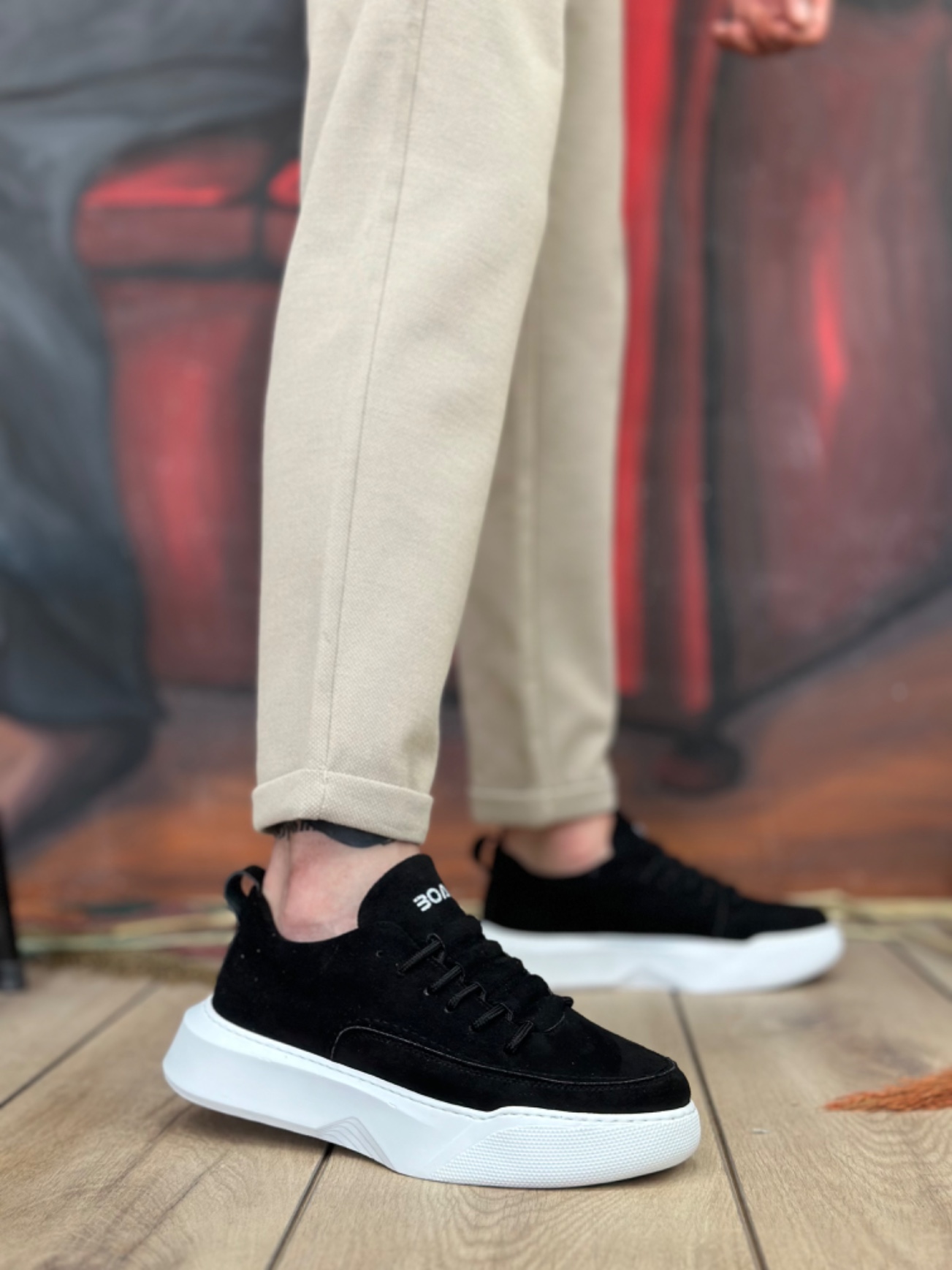 Tarz Erkek Ayakkabı Erkek Spor MirgeShoes Siyah Bağcıklı Erkek Spor Ayakkabı Süet Deri Merdiven Desen Yüksek BYZ Taban MRG010602650