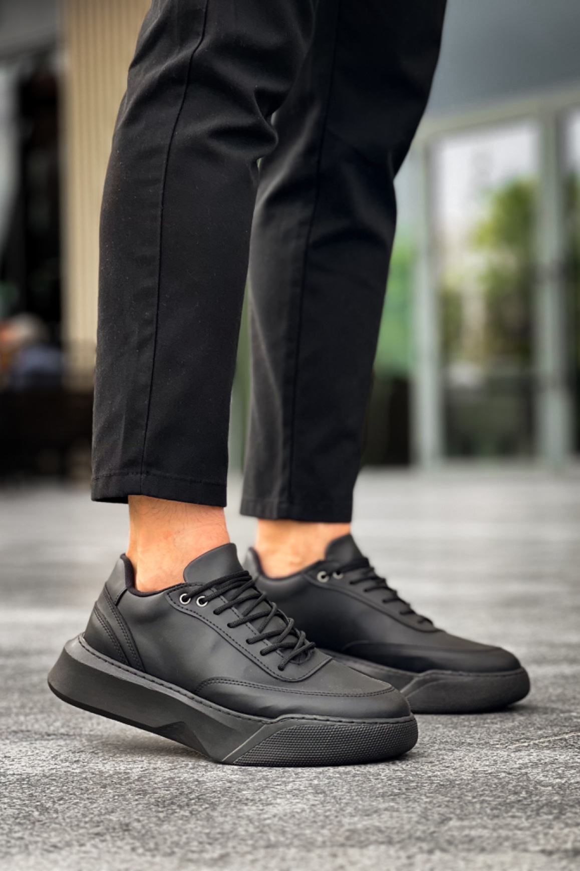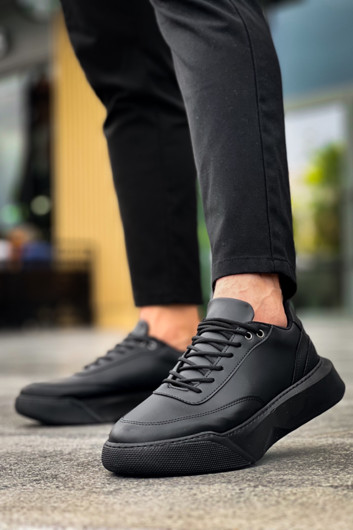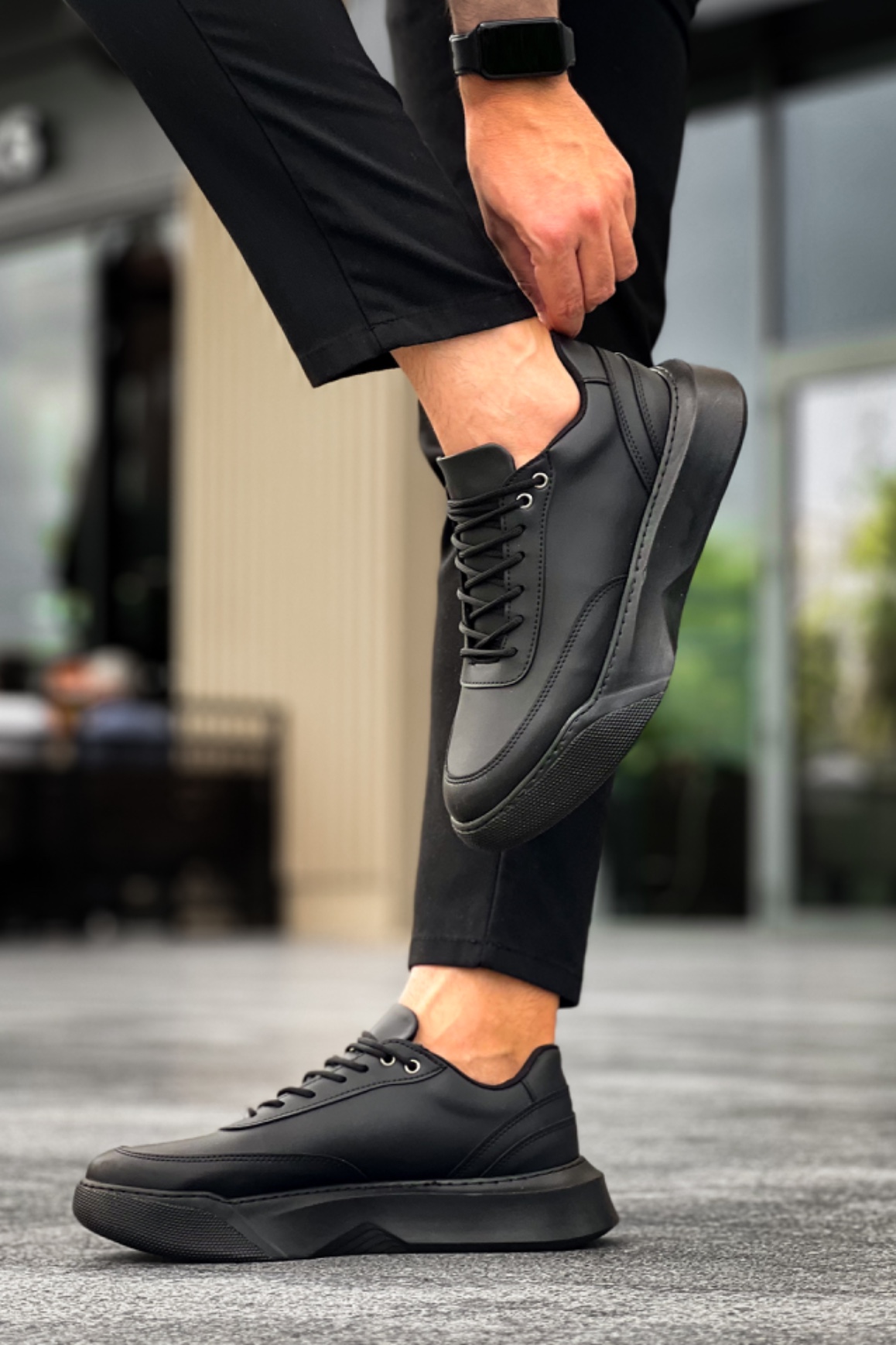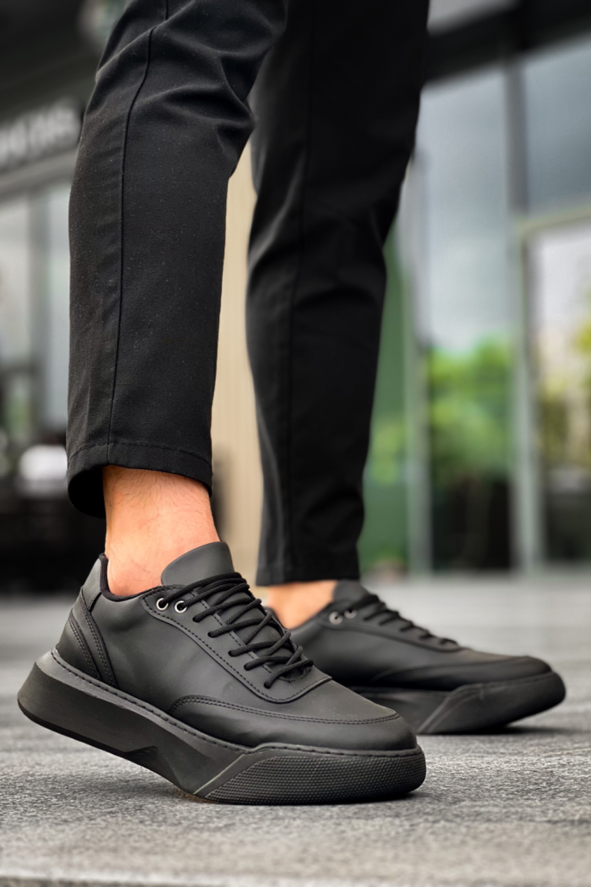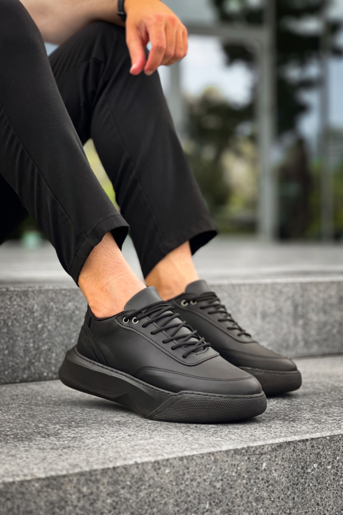 Tarz Erkek Ayakkabı Erkek Spor MirgeShoes Siyah Bağcıklı Erkek Günlük Spor Ayakkabı Yüksek SYH Taban MRG010602672
