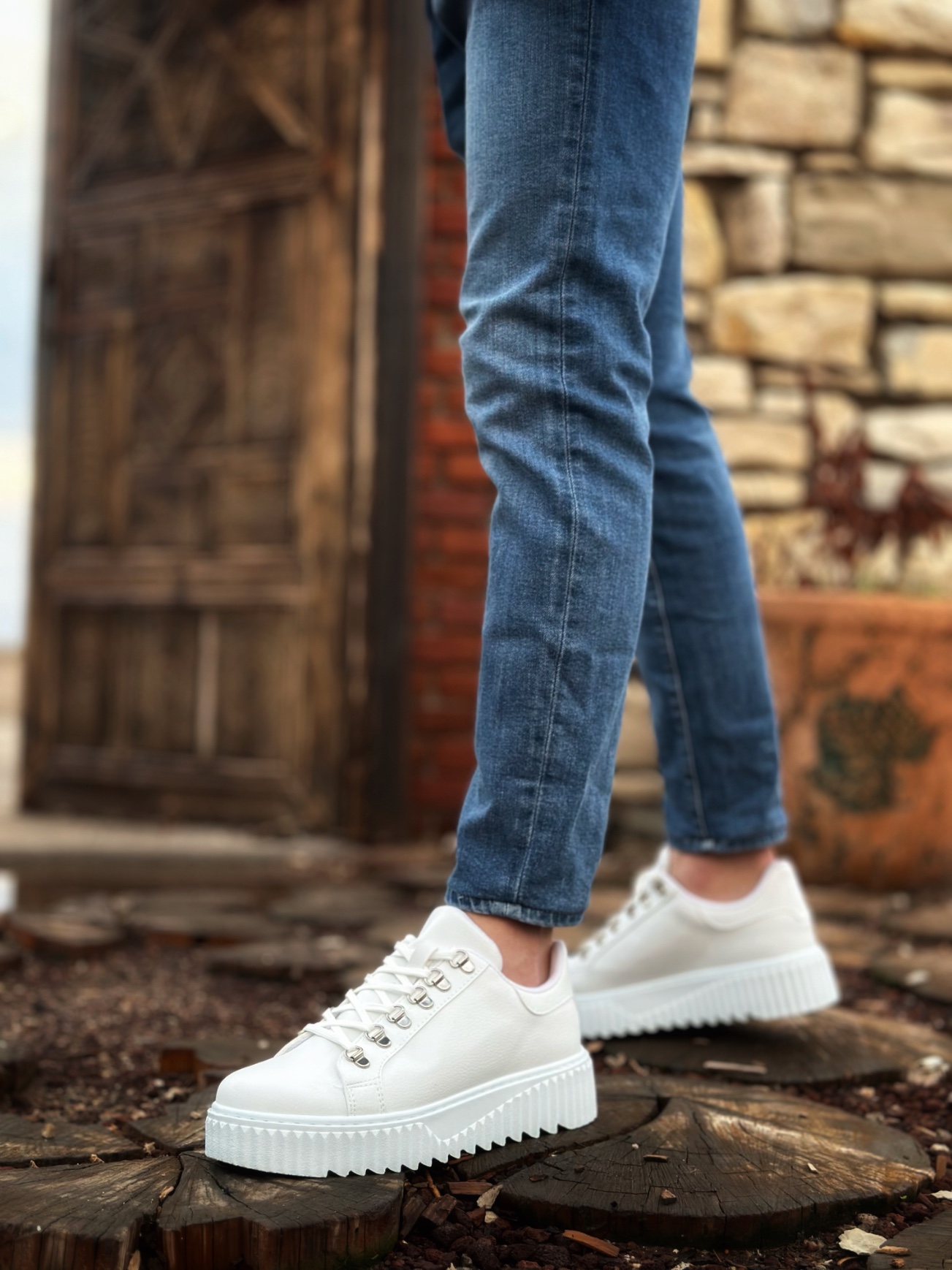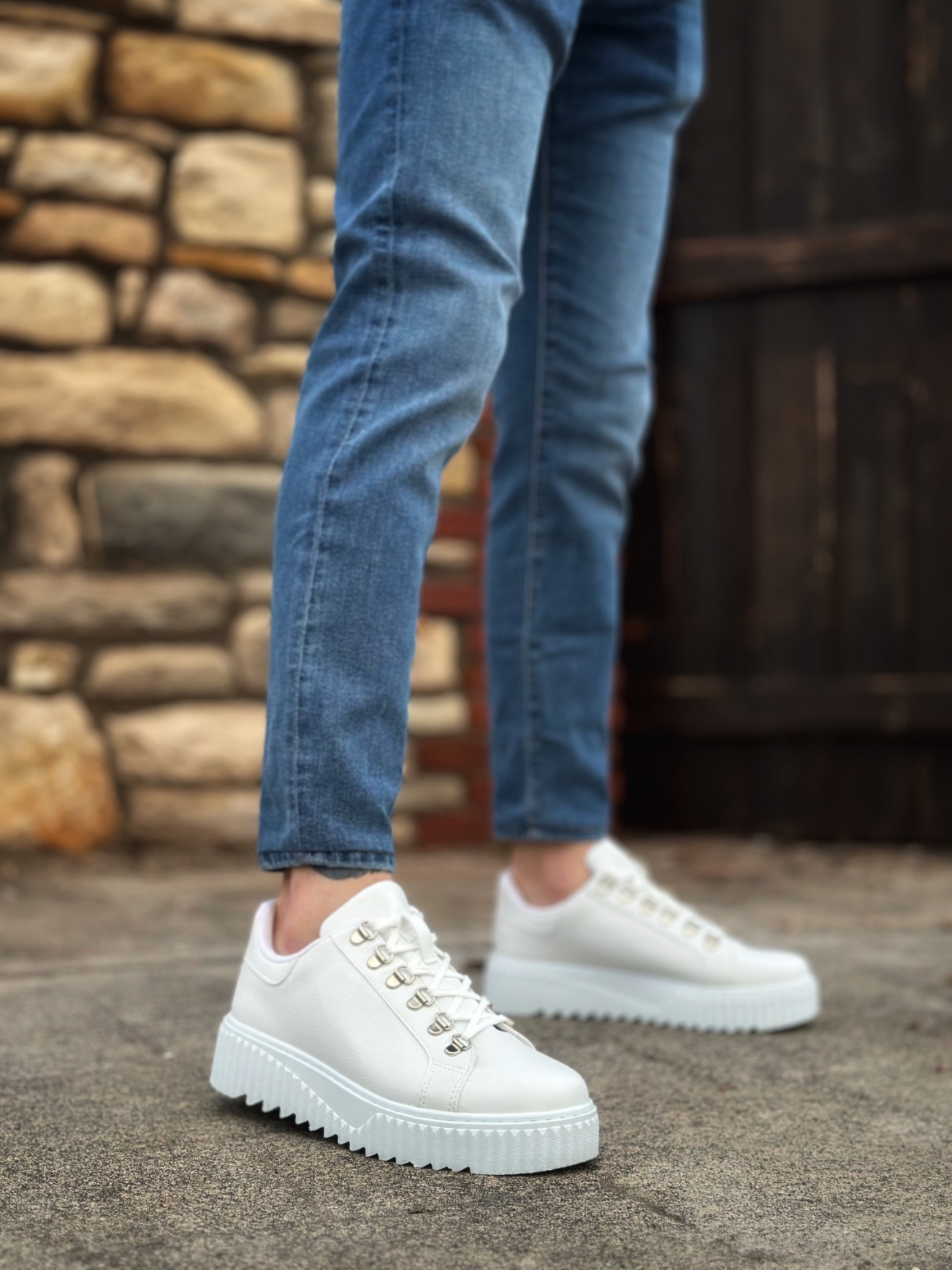 MirgeShoes Beyaz Çengel Bağcıklı Erkek Günlük Ayakkabı Yüksek Kalın BYZ Taban MRG010602823