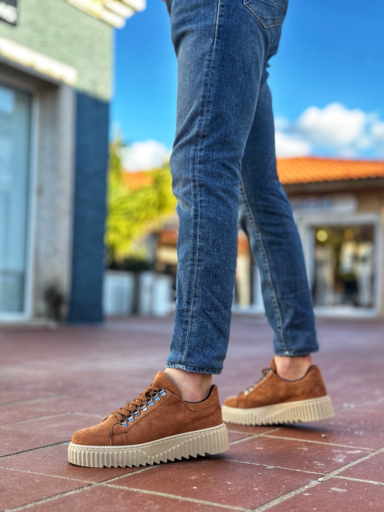 • MirgeShoes Taba Çengel Bağcıklı Erkek Günlük Ayakkabı Yüksek Kalın KRM Taban MRG010602823