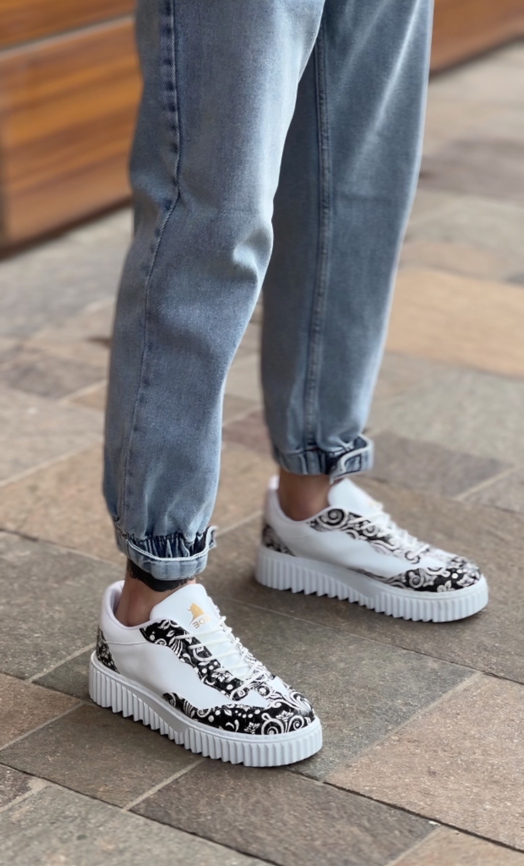 • MirgeShoes Beyaz Erkek Günlük Comfort Ayakkabı Gotik Desenli Kalın BYZ Taban MRG010603120
