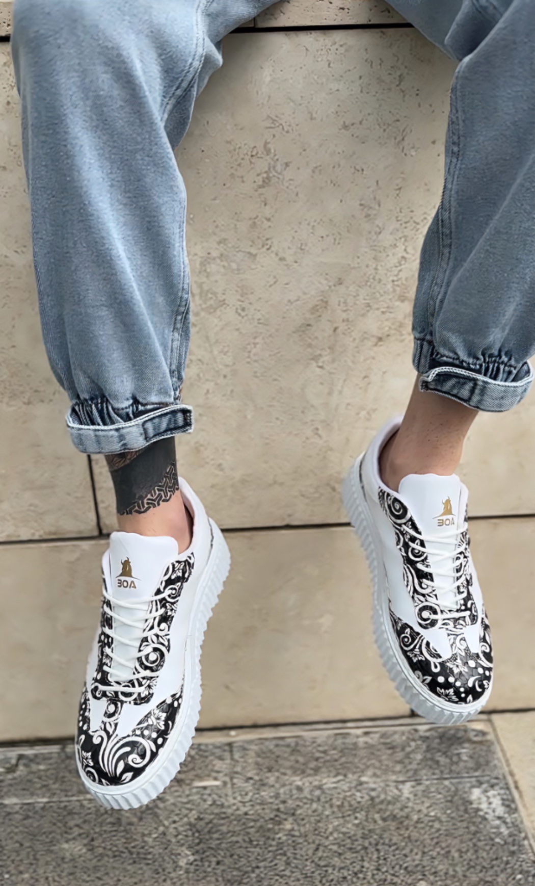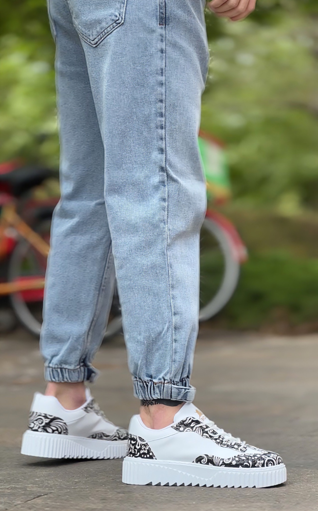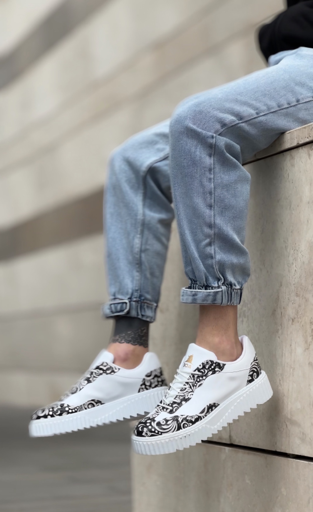 MirgeShoes Beyaz Erkek Günlük Comfort Ayakkabı Gotik Desenli Kalın BYZ Taban MRG010603120