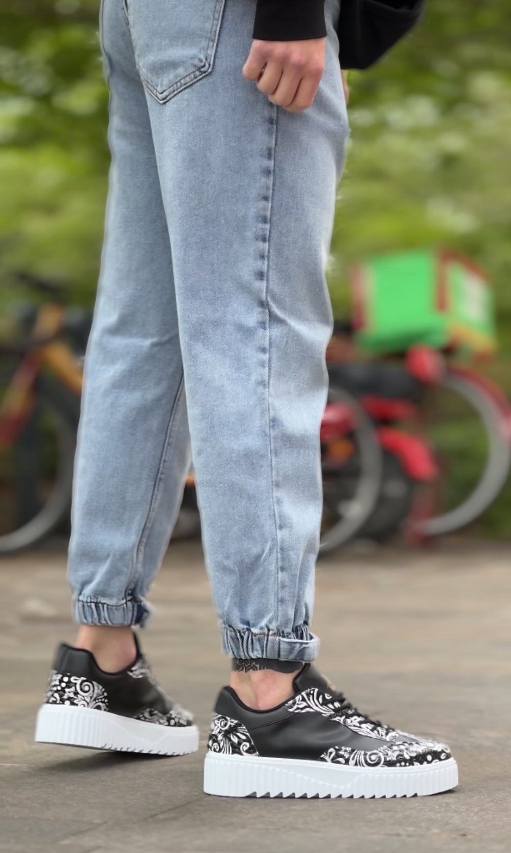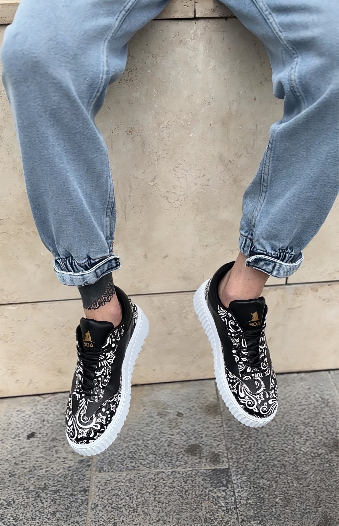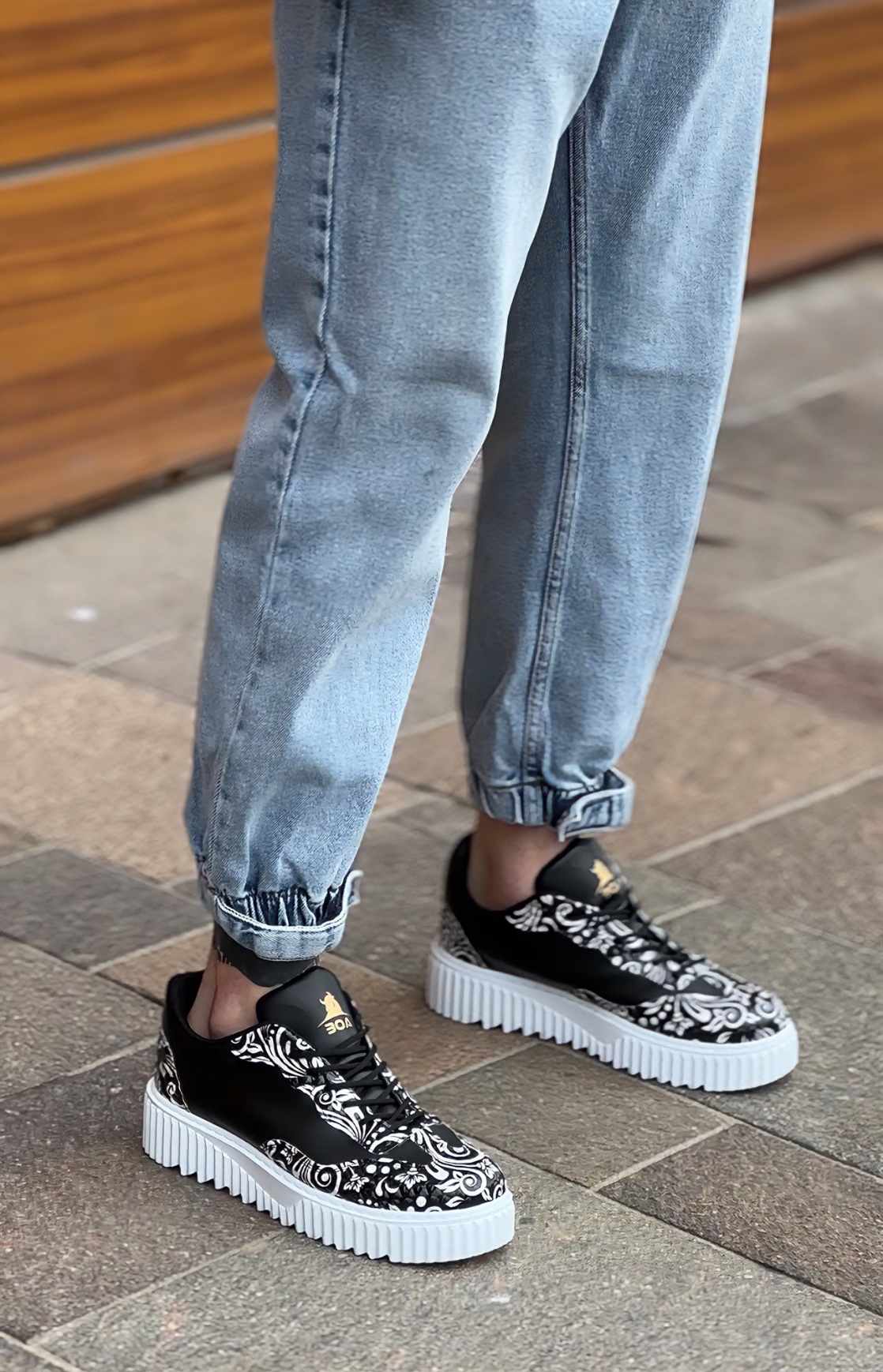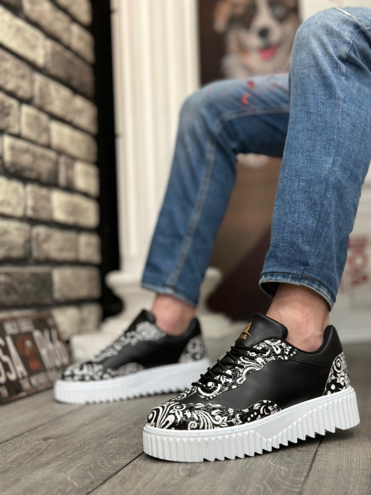 MirgeShoes Siyah Erkek Günlük Comfort Ayakkabı Gotik Desenli Kalın BYZ Taban MRG010603120