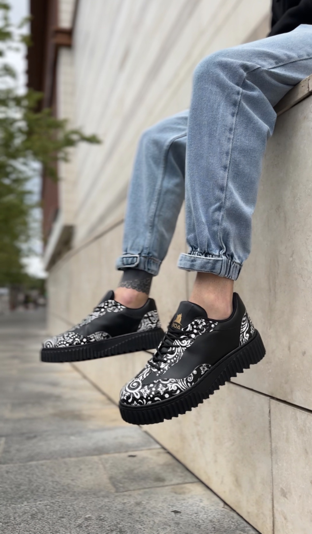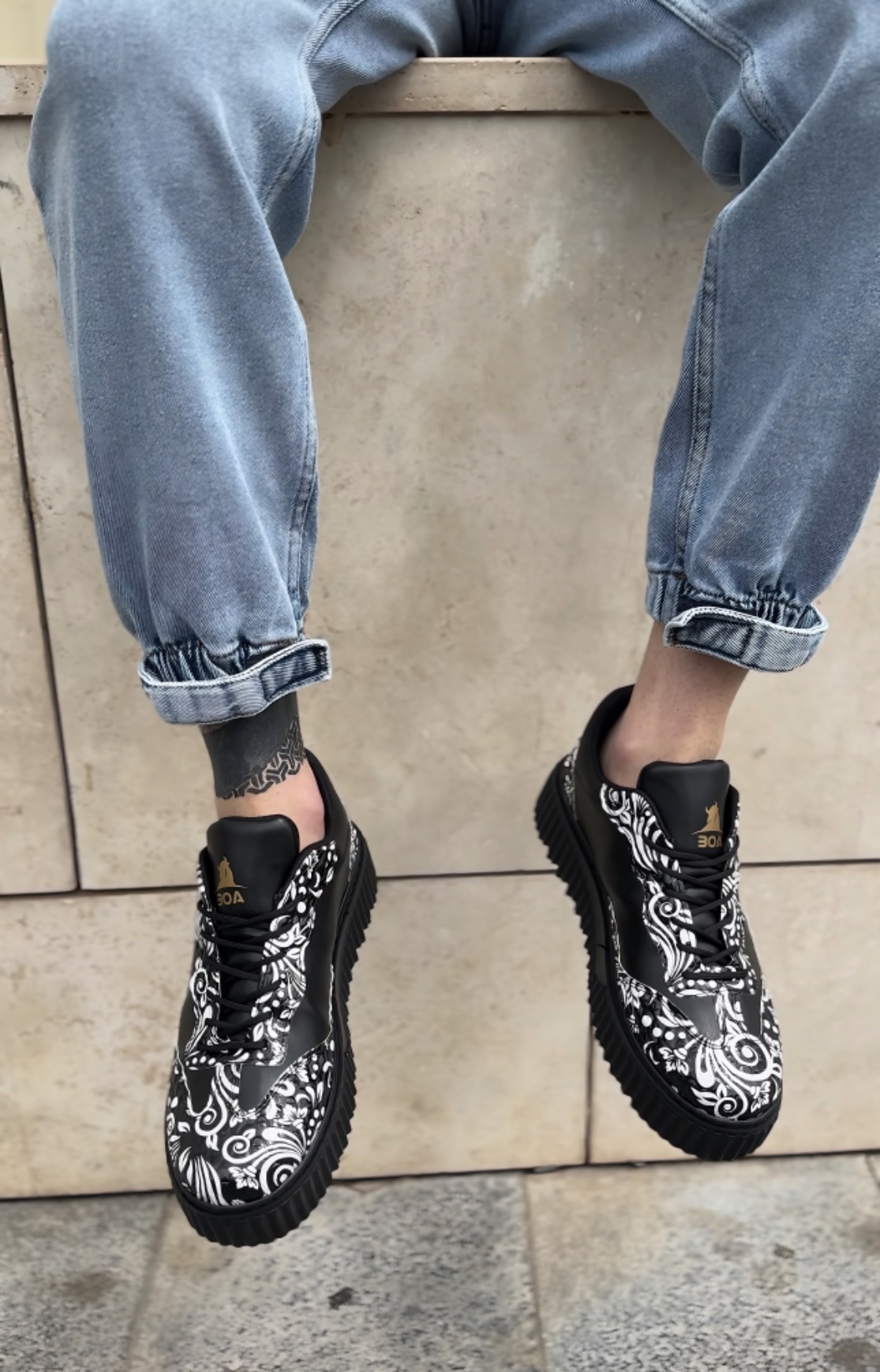 MirgeShoes Siyah Erkek Günlük Comfort Ayakkabı Gotik Desenli Kalın SYH Taban MRG010603120