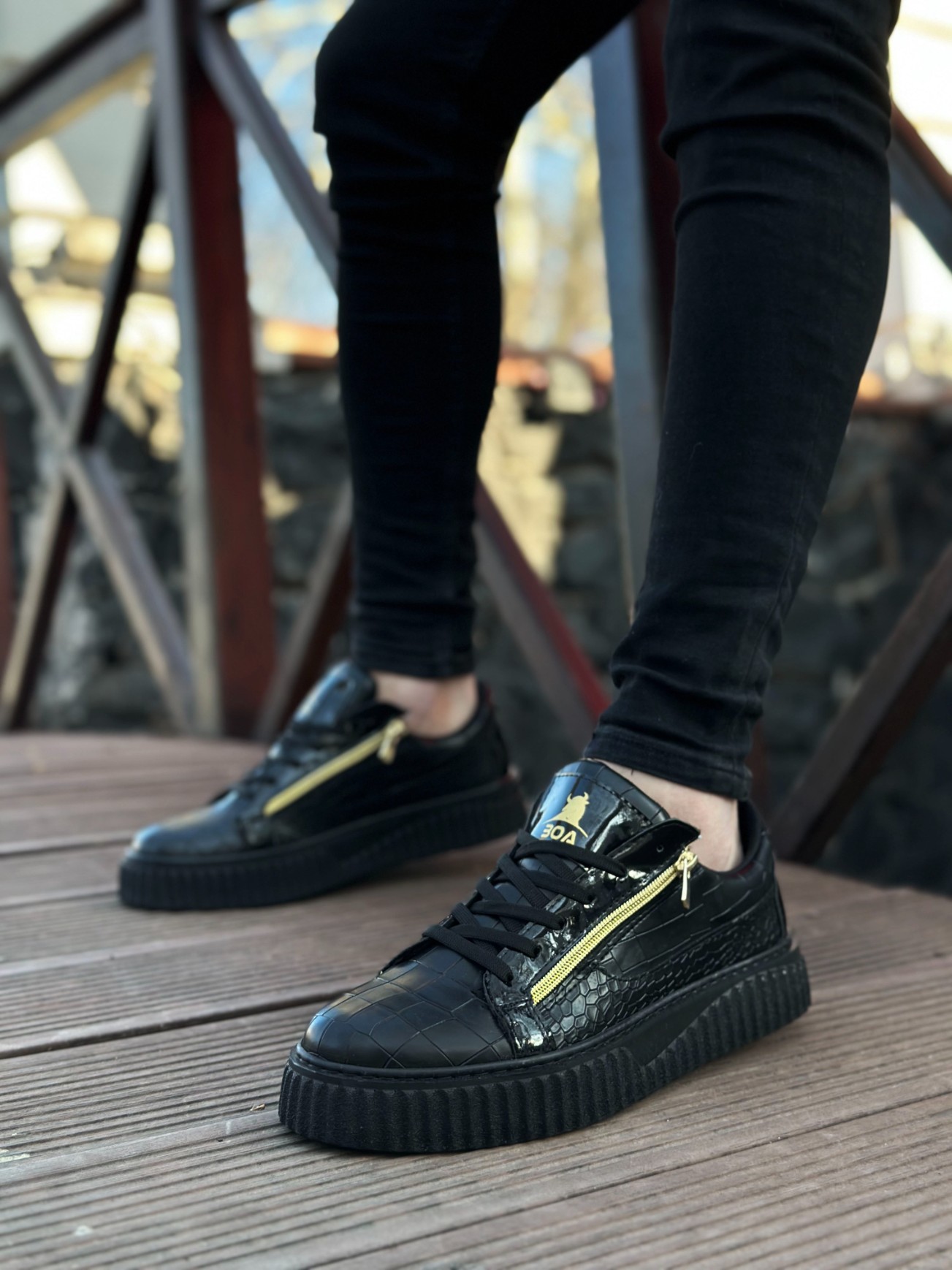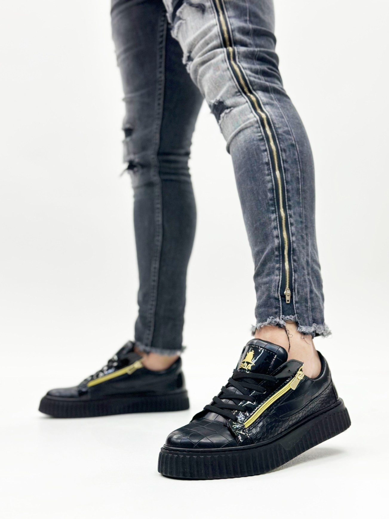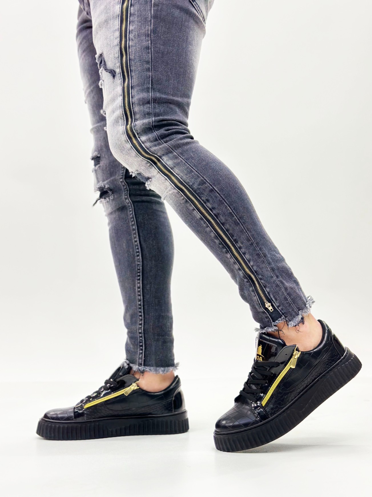 MirgeShoes Siyah Çift Fermuarlı Erkek Casual Ayakkabı Kalın Yüksek Siyah Taban MRG01062626
