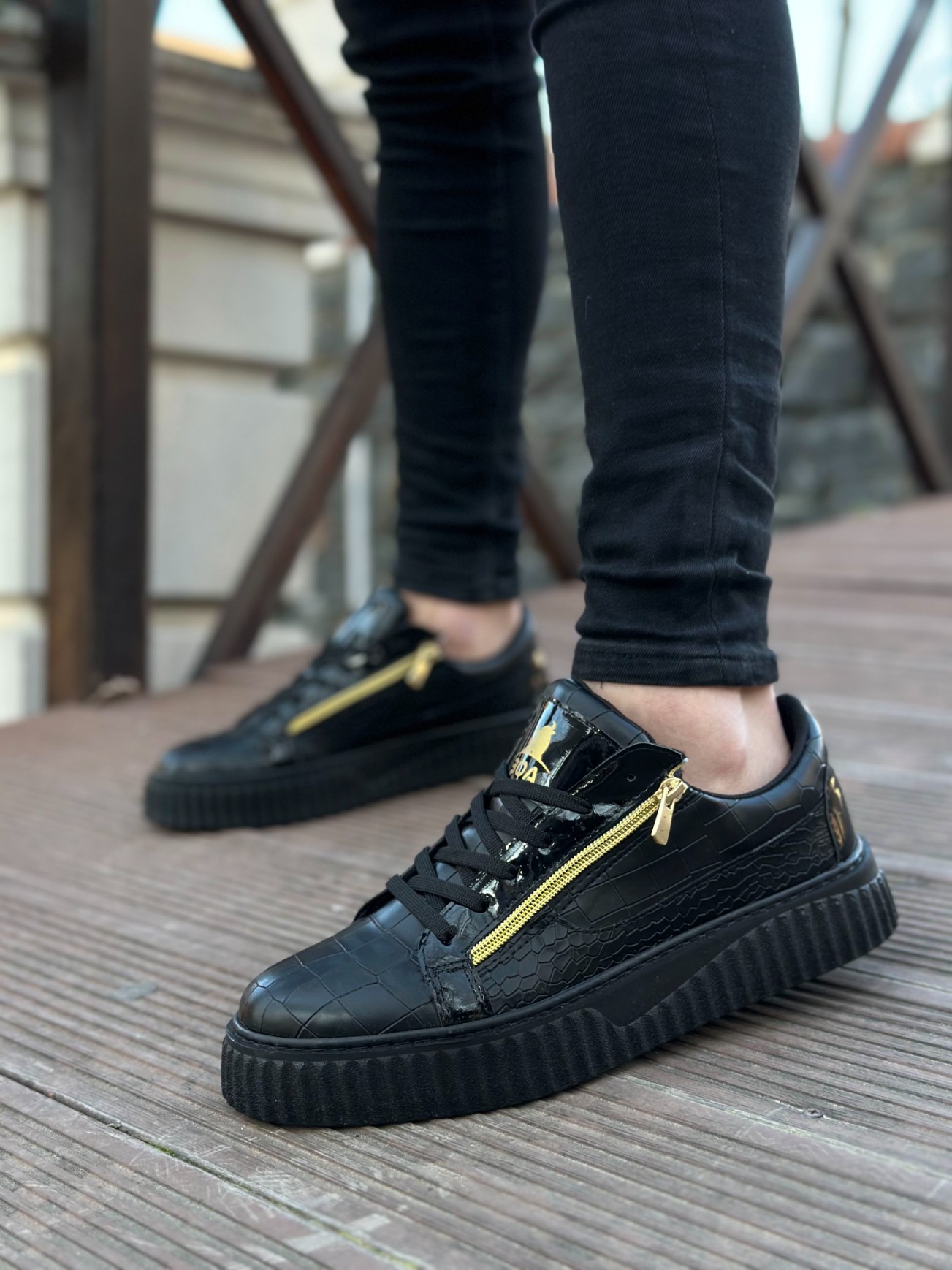 • MirgeShoes Siyah Çift Fermuarlı Erkek Casual Ayakkabı Kalın Yüksek Siyah Taban MRG01062626