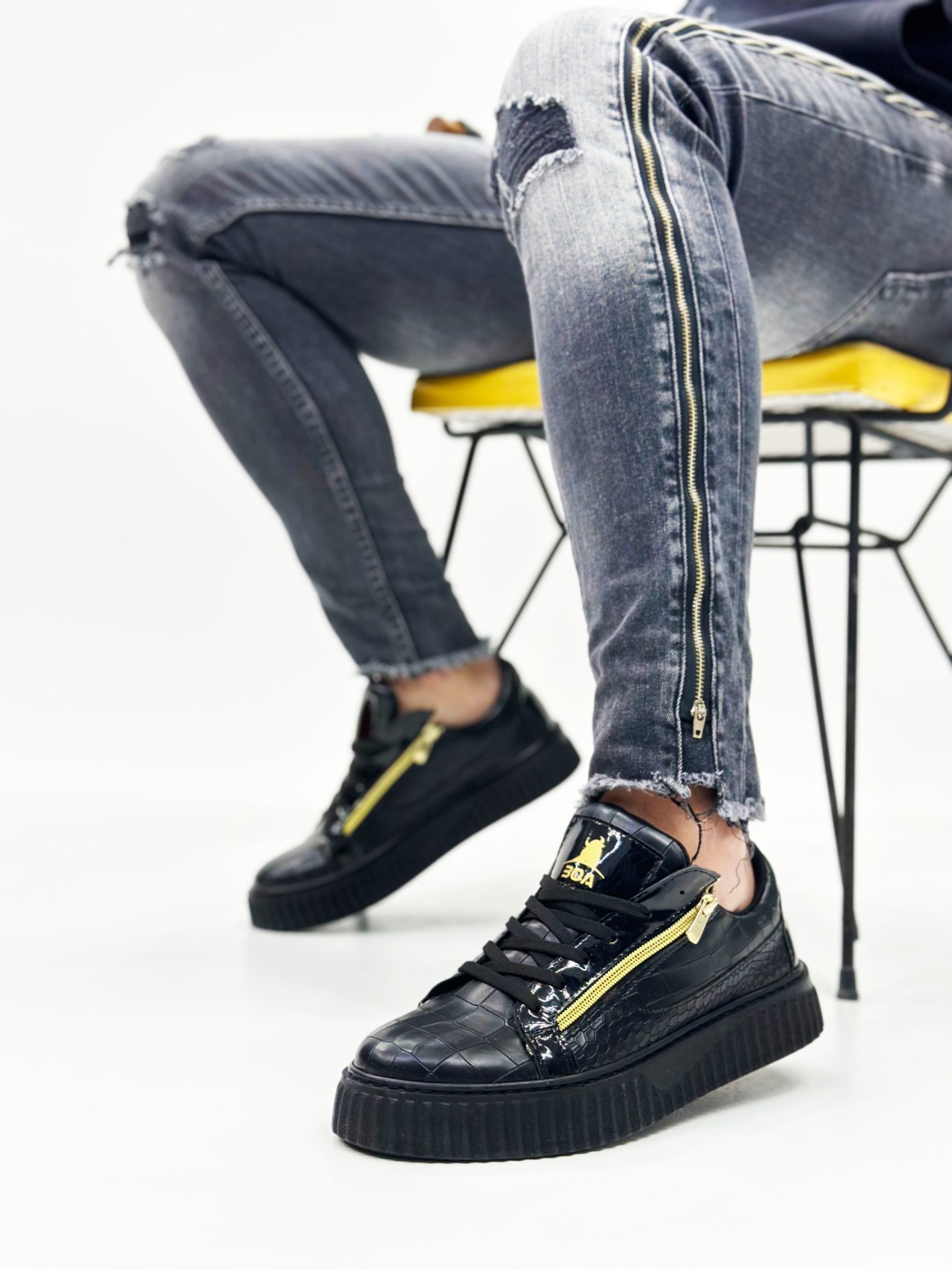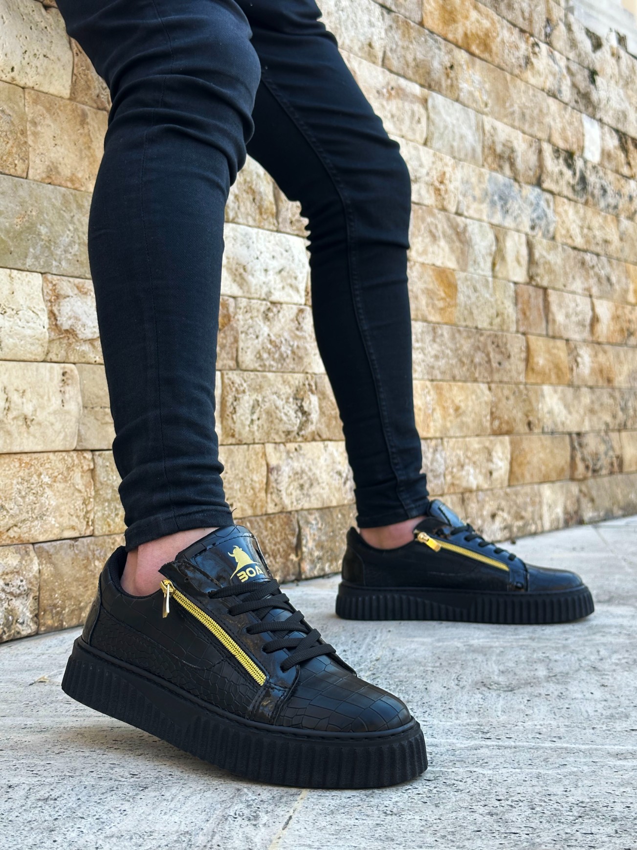 Tarz Erkek Ayakkabı Erkek Spor MirgeShoes Siyah Çift Fermuarlı Erkek Casual Ayakkabı Kalın Yüksek Siyah Taban MRG01062626