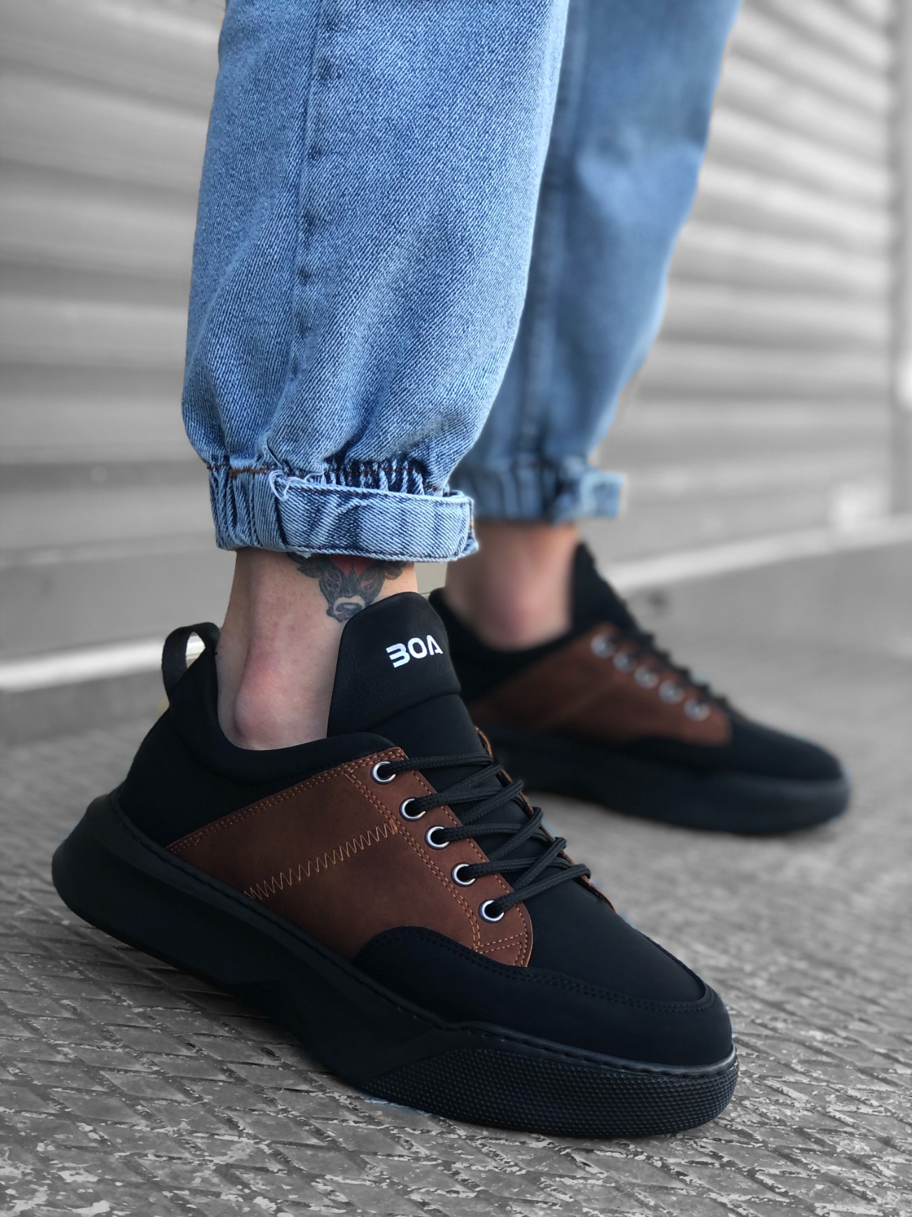 • MRG0163 Bağcıklı Erkek Yüksek Taban Siyah Taba Spor Ayakkabı