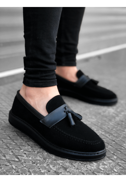 MRG0307 MRG Kalın Yüksek Taban Çift Bant Taba Siyah Erkek Ayakkabı