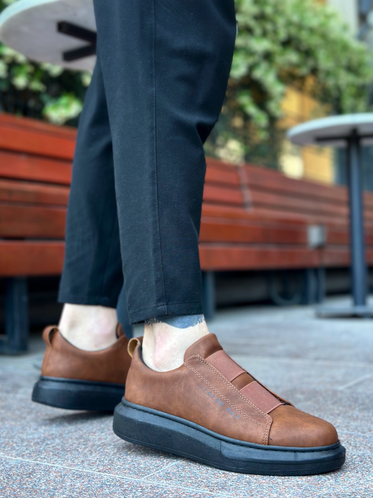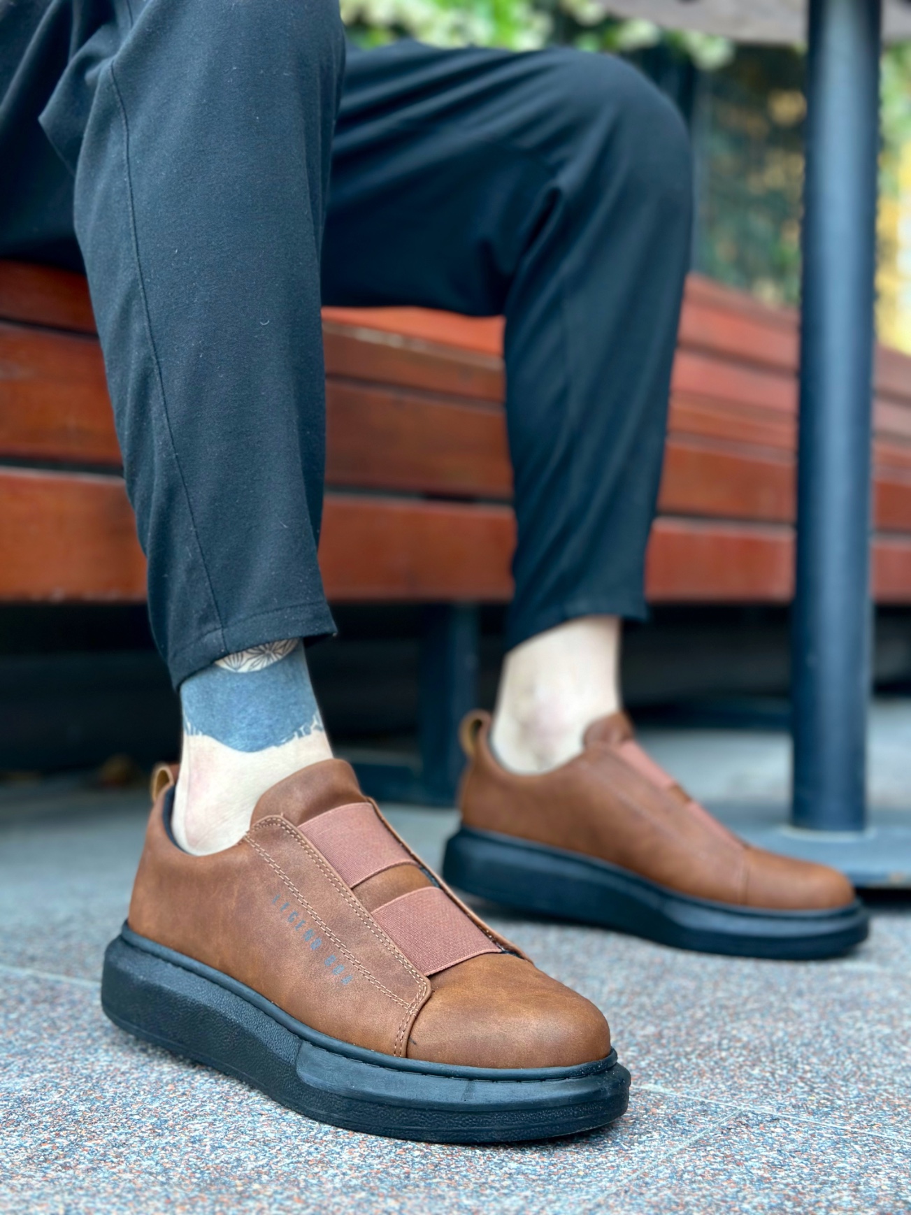 Tarz Erkek Ayakkabı Erkek Spor MRG0307 MRG Kalın Yüksek Taban Çift Bant Taba Siyah Erkek Ayakkabı