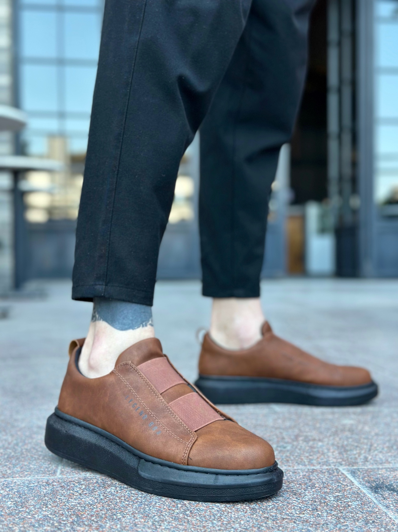 • MRG0307 MRG Kalın Yüksek Taban Çift Bant Taba Siyah Erkek Ayakkabı
