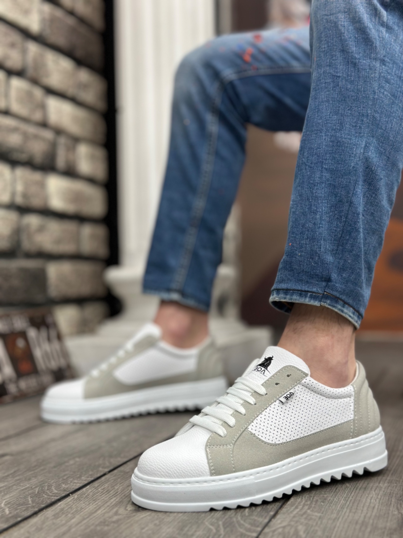 • MRG0323 MRG Kalın Tırtık Yüksek Taban Beyaz Gri Bağcıklı Spor Erkek Ayakkabı