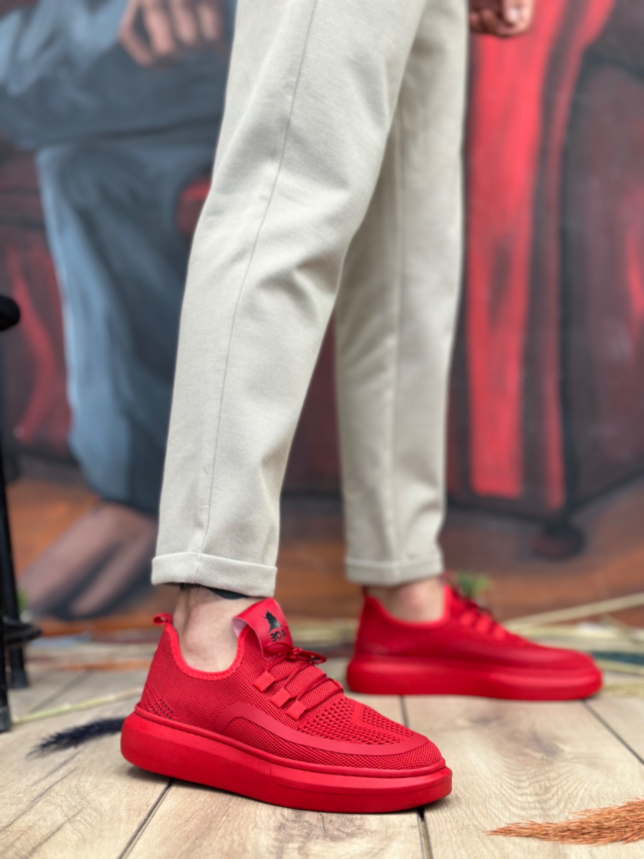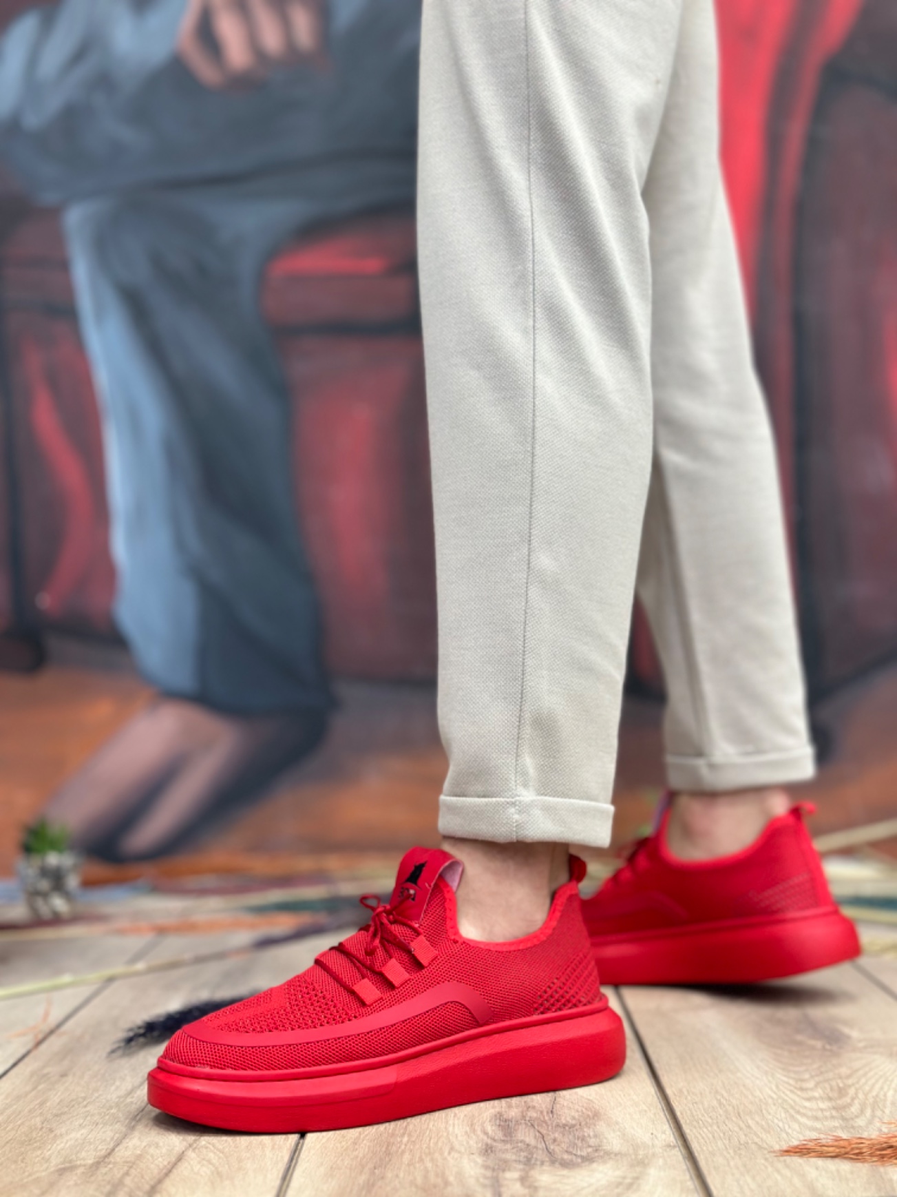 • MRG0375 Özel Örme Triko Tarz Kırmızı Renk Spor Ayakkabı