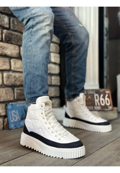 MRG0160 Bantlı Erkek Yüksek Taban Siyah Beyaz Spor Ayakkabı