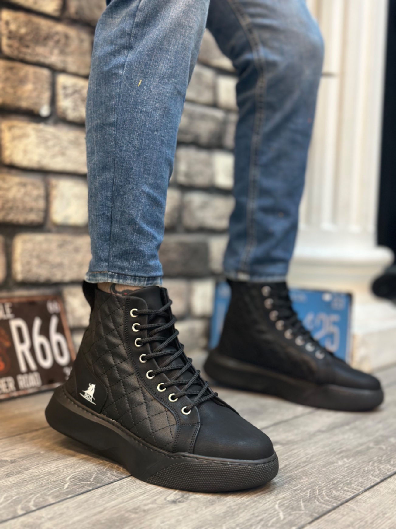 • MirgeShoes Siyah Bağcıklı Erkek Spor Bilek Bot Kapitone Yüksek SYH Taban MRG010602477