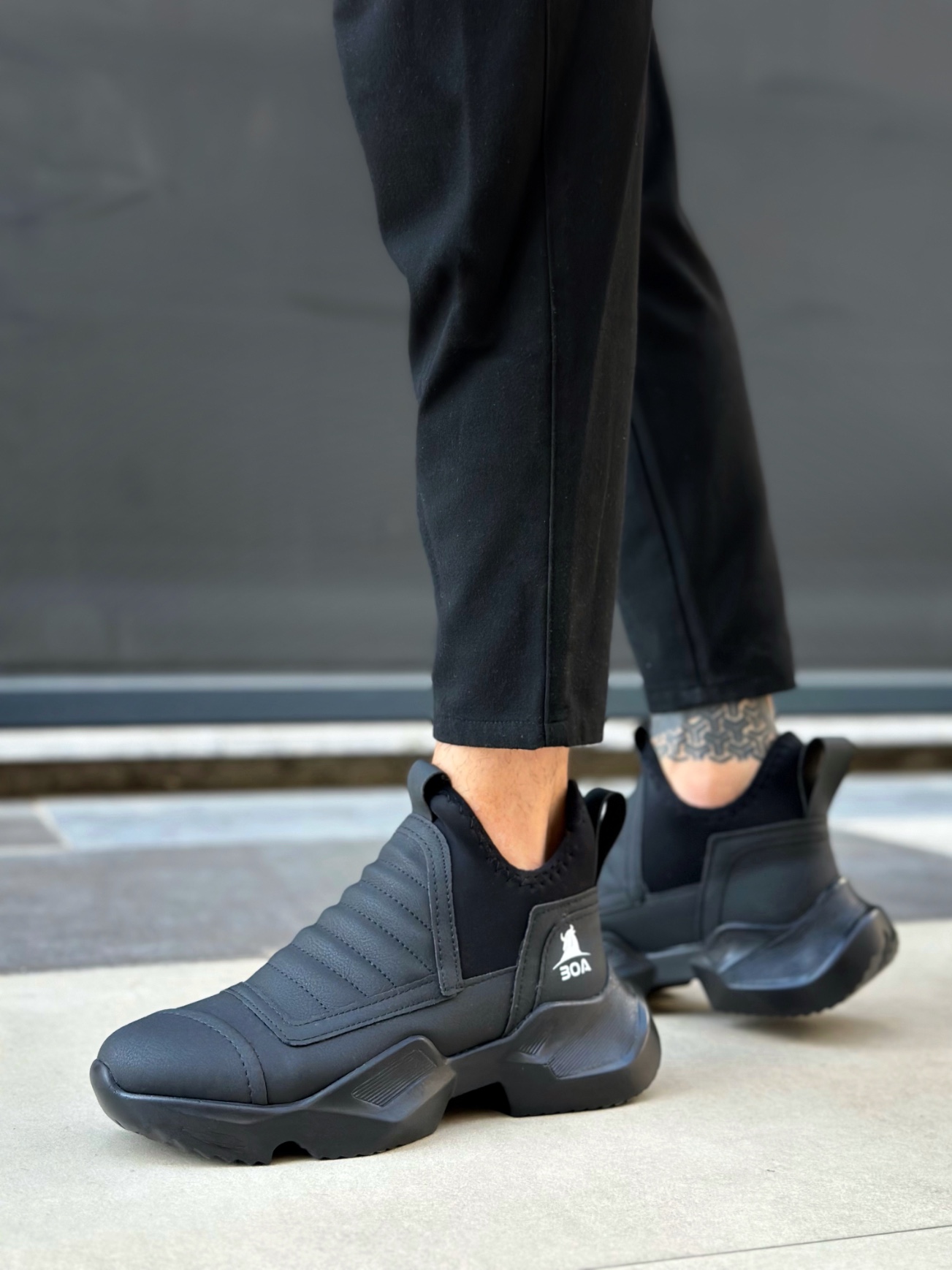 Tarz Erkek Ayakkabı Erkek Bot MirgeShoes Siyah Bağcıksız Erkek Spor Yarım Bilek Bot Rahat Yüksek SYH Taban MRG010602719