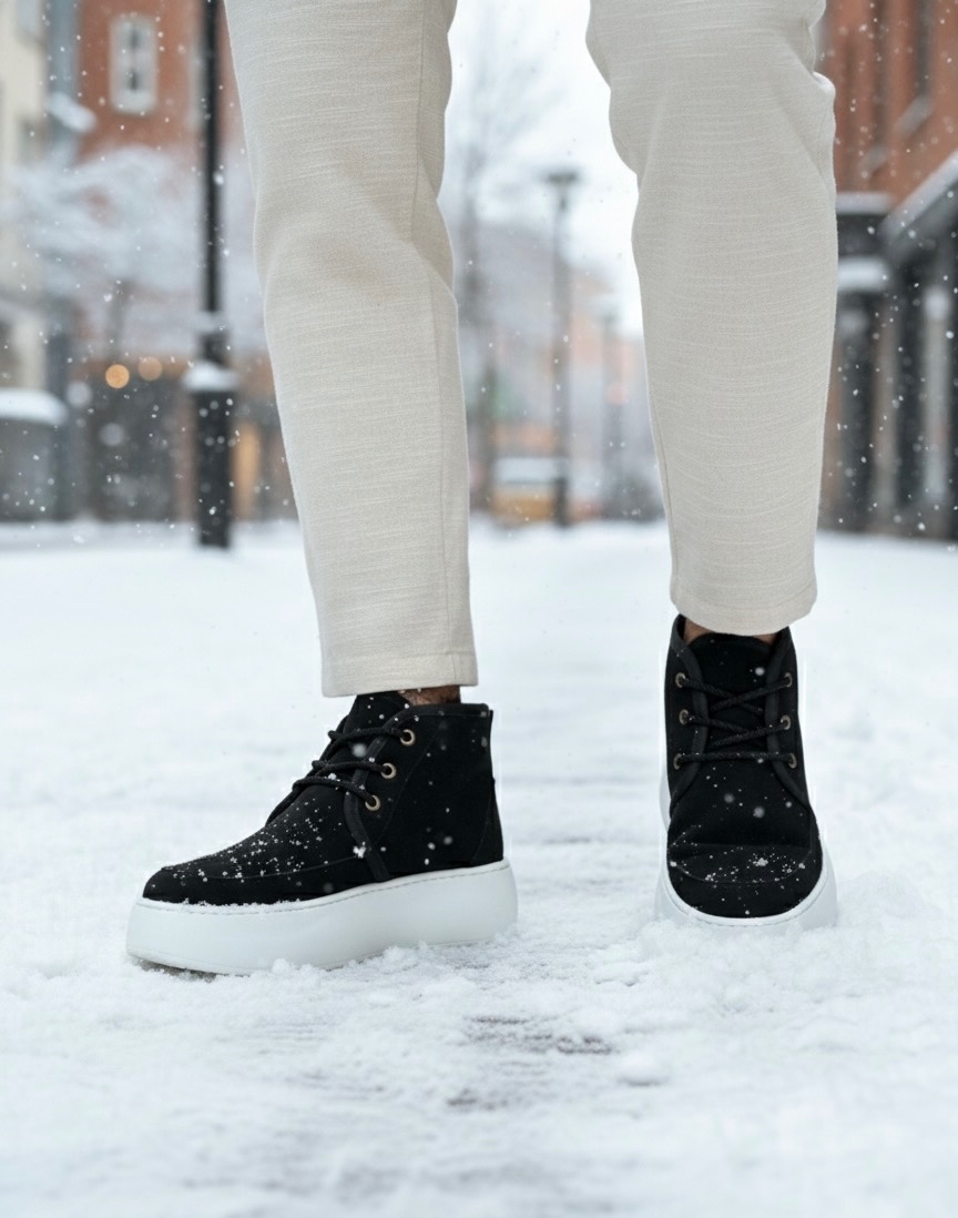 • MirgeShoes Siyah Bağcıklı Erkek Tarz Spor Bot İçi Kürklü Süet Kalın BYZ Taban MRG010602868