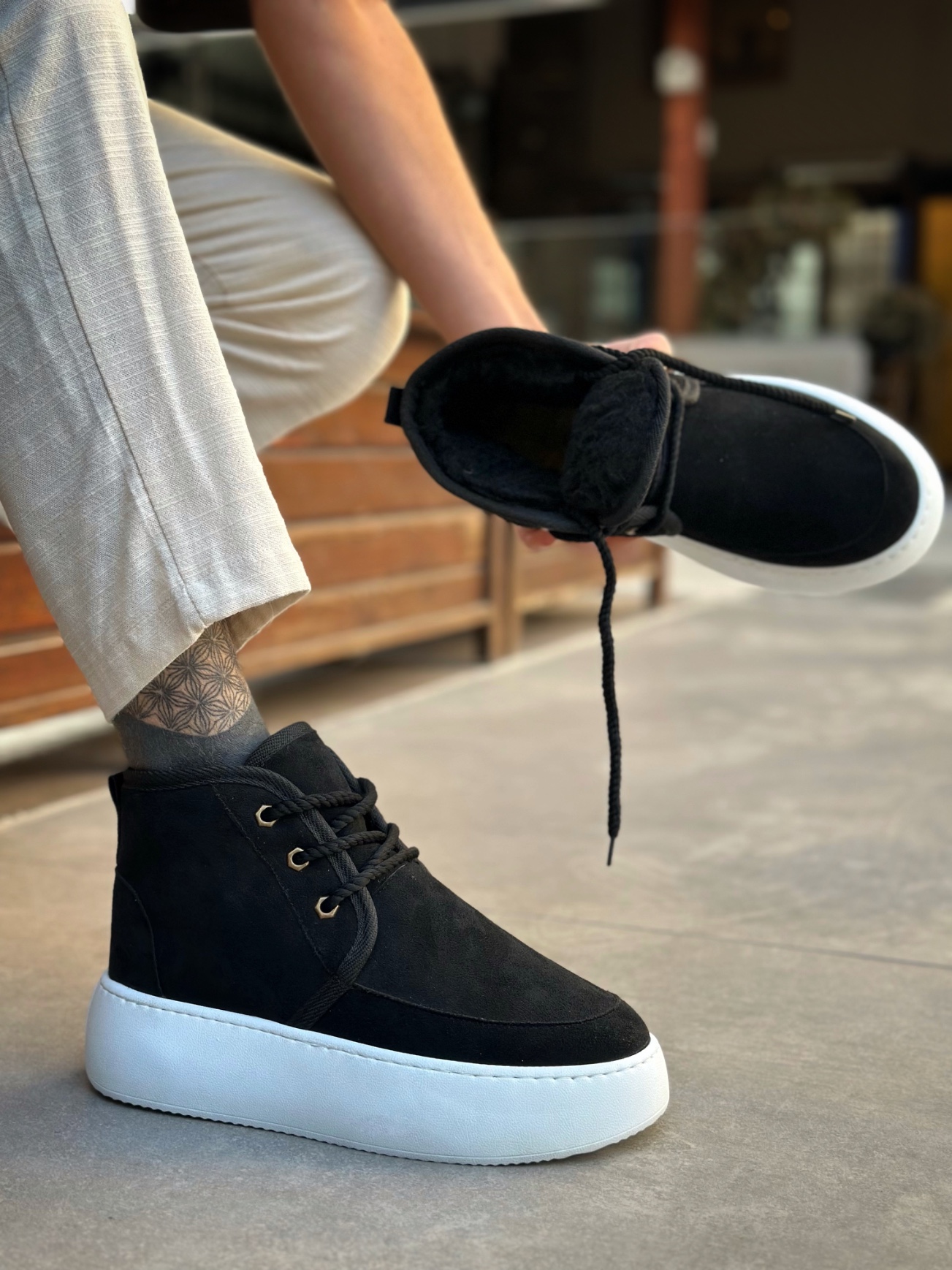 MirgeShoes Siyah Bağcıklı Erkek Tarz Spor Bot İçi Kürklü Süet Kalın BYZ Taban MRG010602868