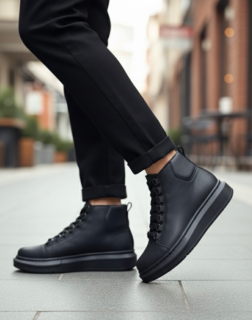 Tarz Erkek Ayakkabı Erkek Bot MirgeShoes Siyah Bağcıklı Erkek Tarz Spor Bot Günlük Rahat Kalın SYH Taban MRG010603031