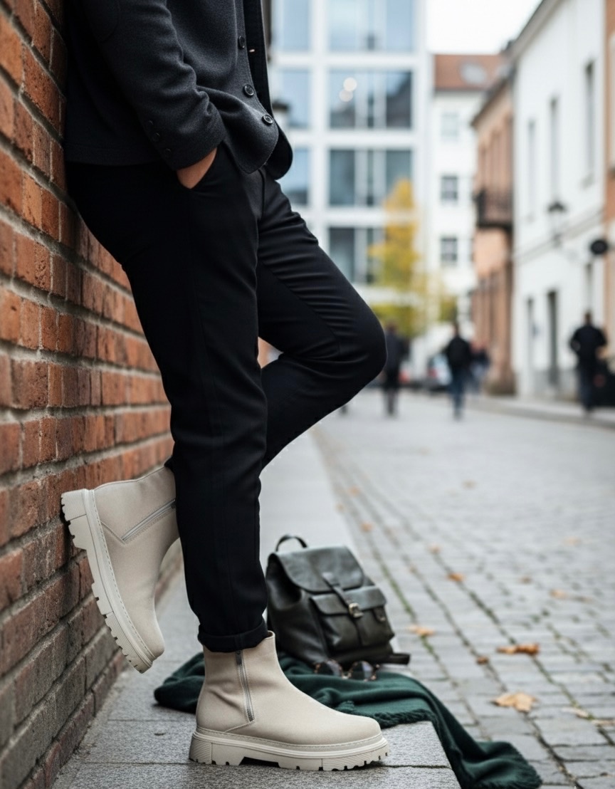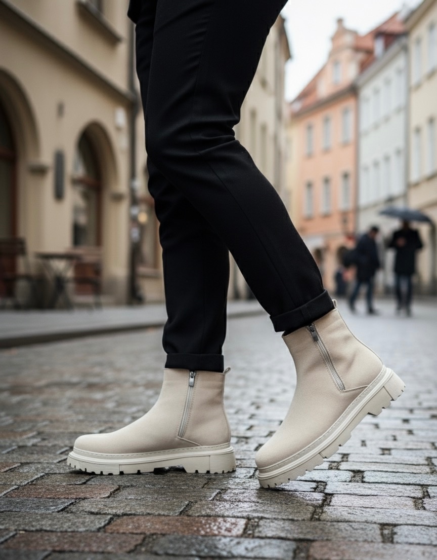 Tarz Erkek Ayakkabı Erkek Bot MirgeShoes Bej Çift Fermuarlı Erkek Yarım Bilek Bot Poli BEJ Taban MRG010603095