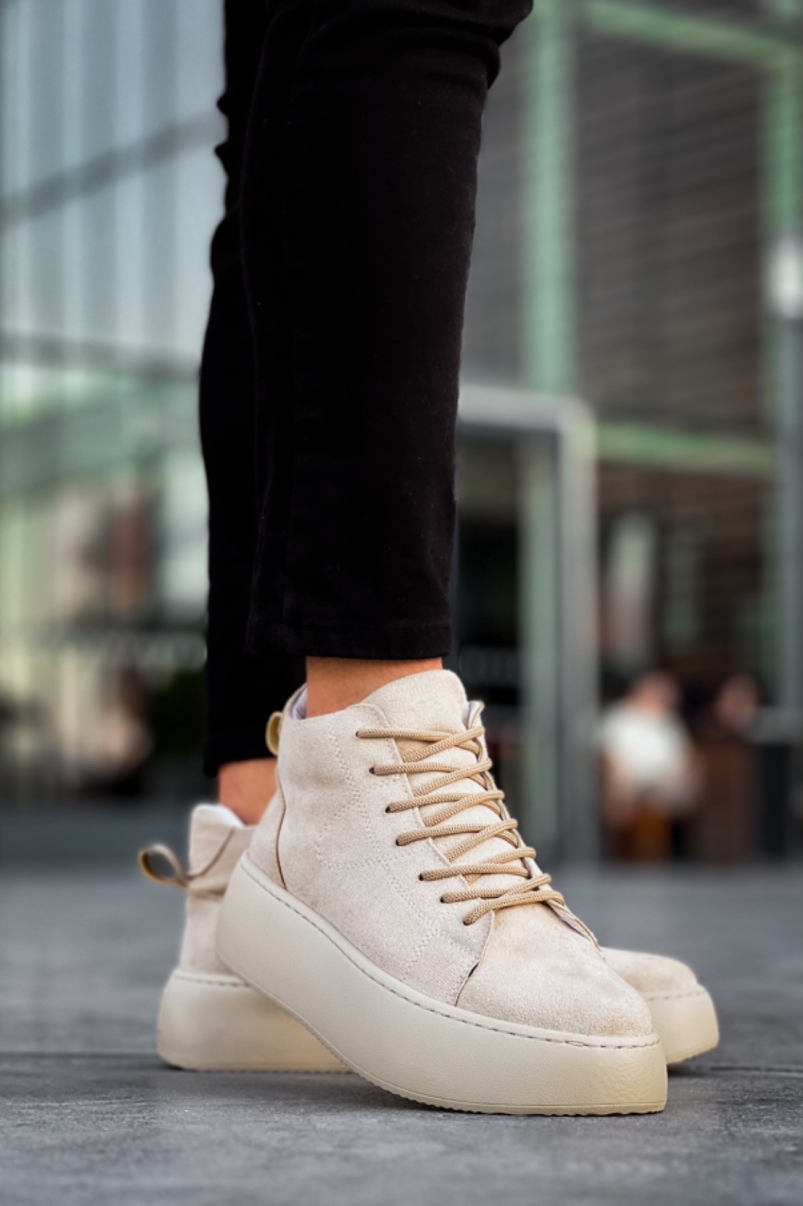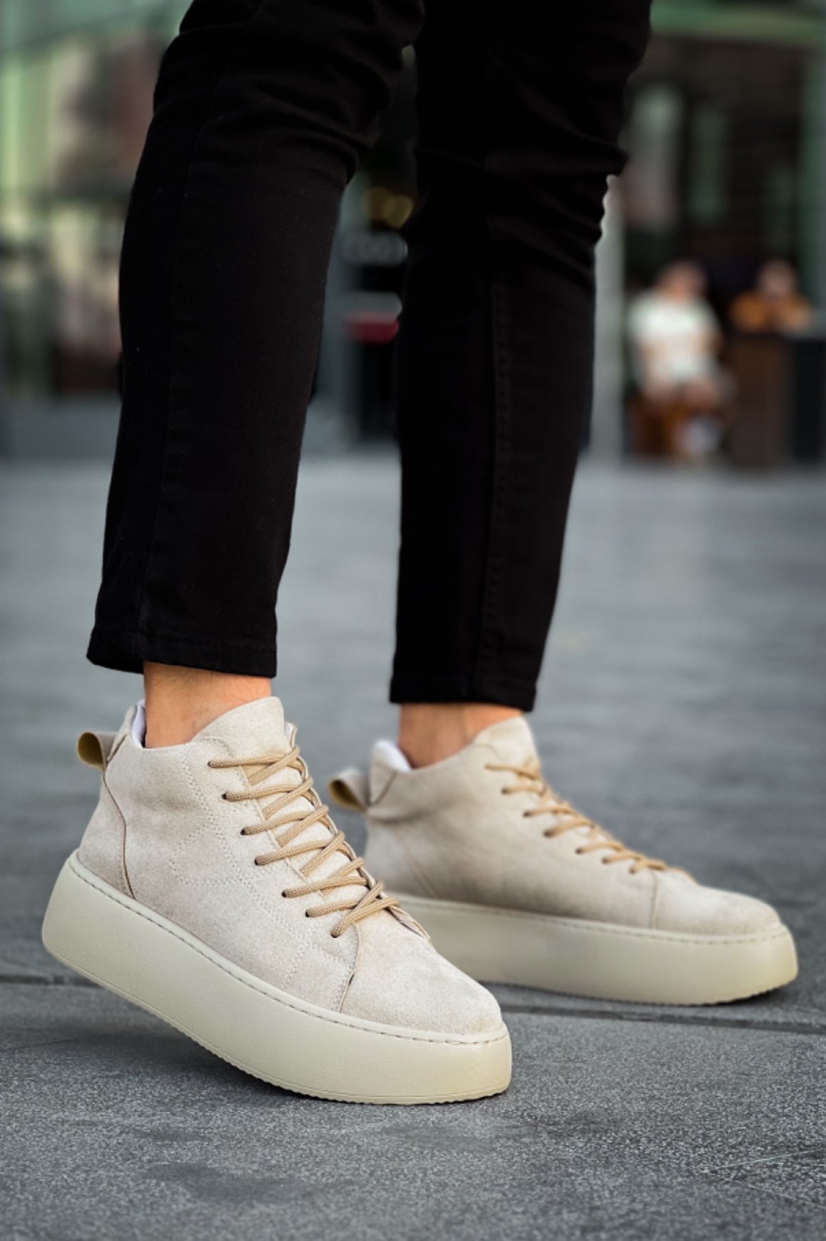 • MirgeShoes Krem Bağcıklı Erkek Spor Bot Süet Deri Rahat Yüksek Kalın Taban Kr MRG01062328