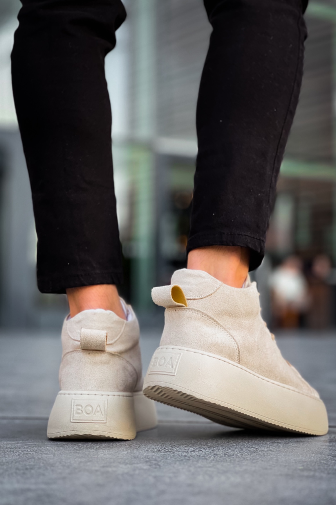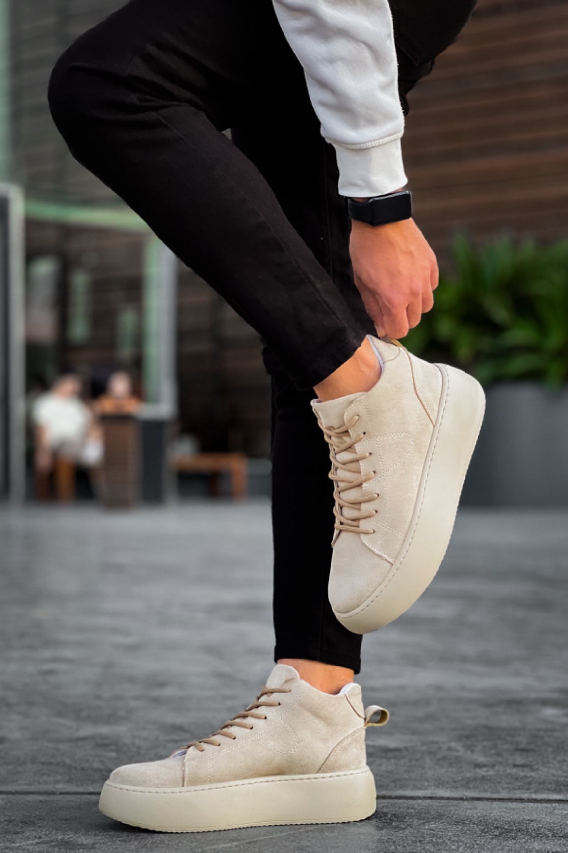 MirgeShoes Krem Bağcıklı Erkek Spor Bot Süet Deri Rahat Yüksek Kalın Taban Kr MRG01062328