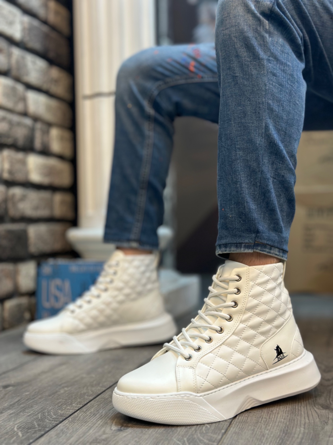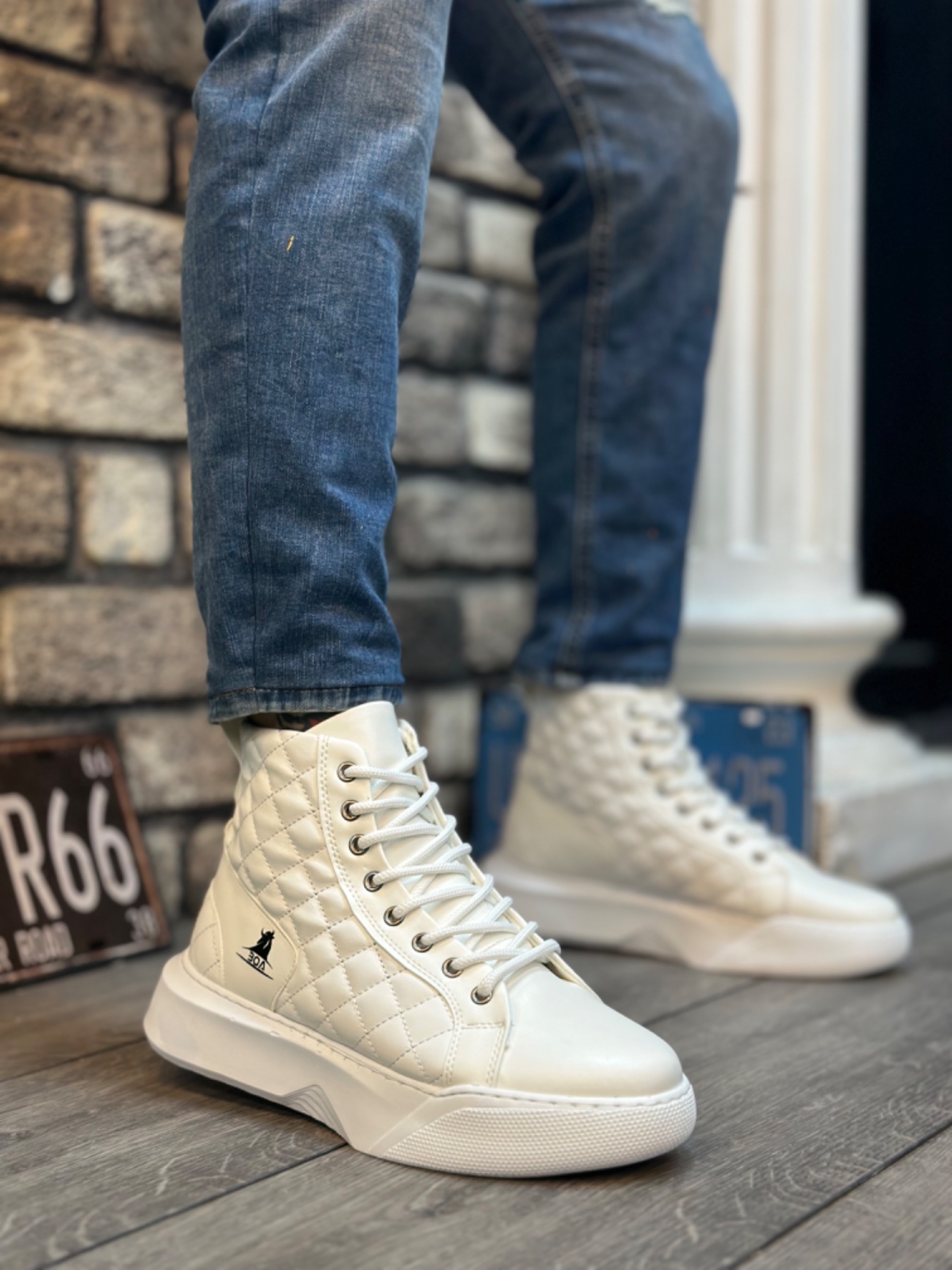 MRG0159 Bağcıklı Beyaz Kapitone Erkek Yüksek Taban Spor Bot