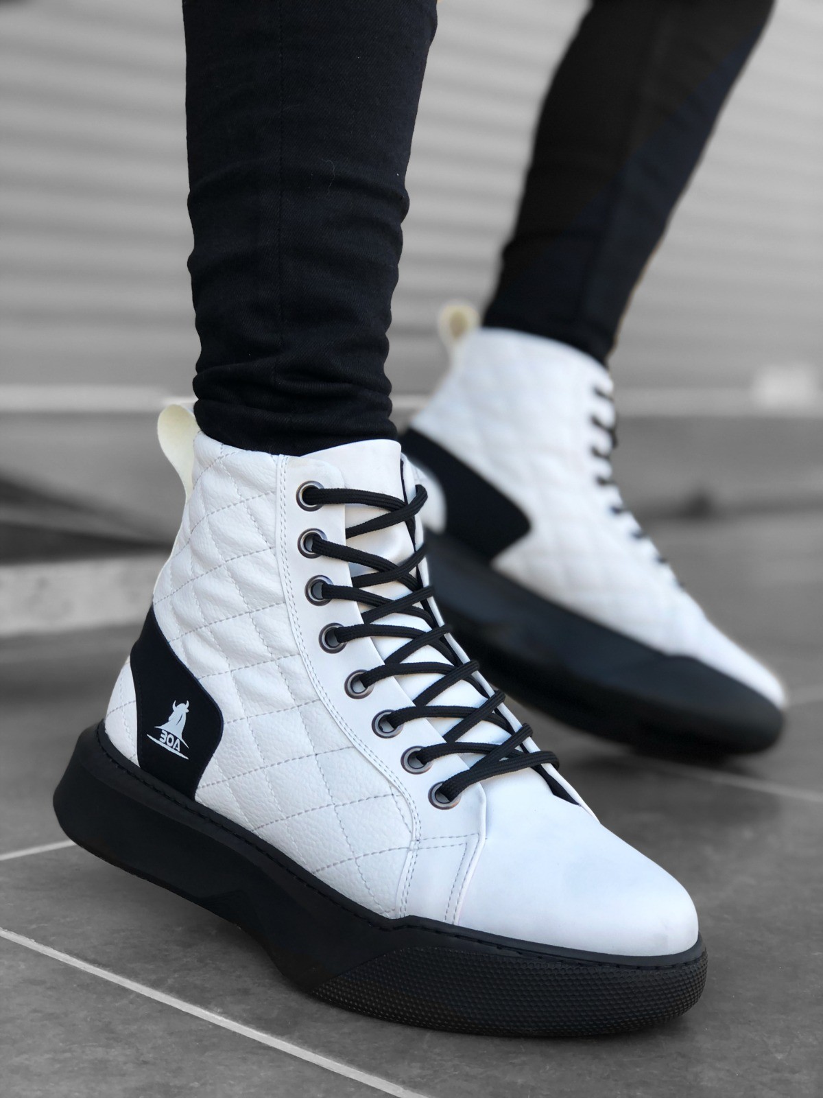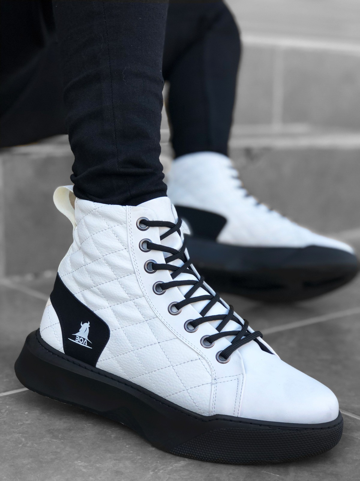 • MRG0159 Bağcıklı Beyaz Kapitone Siyah Taban Erkek Yüksek Taban Spor Bot