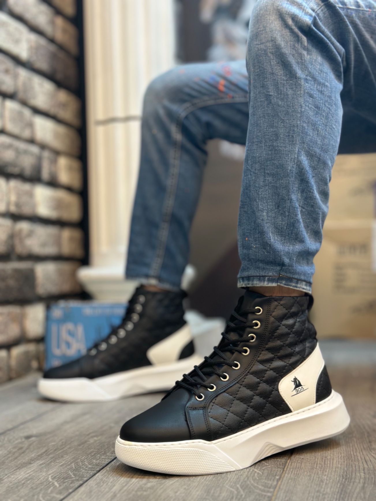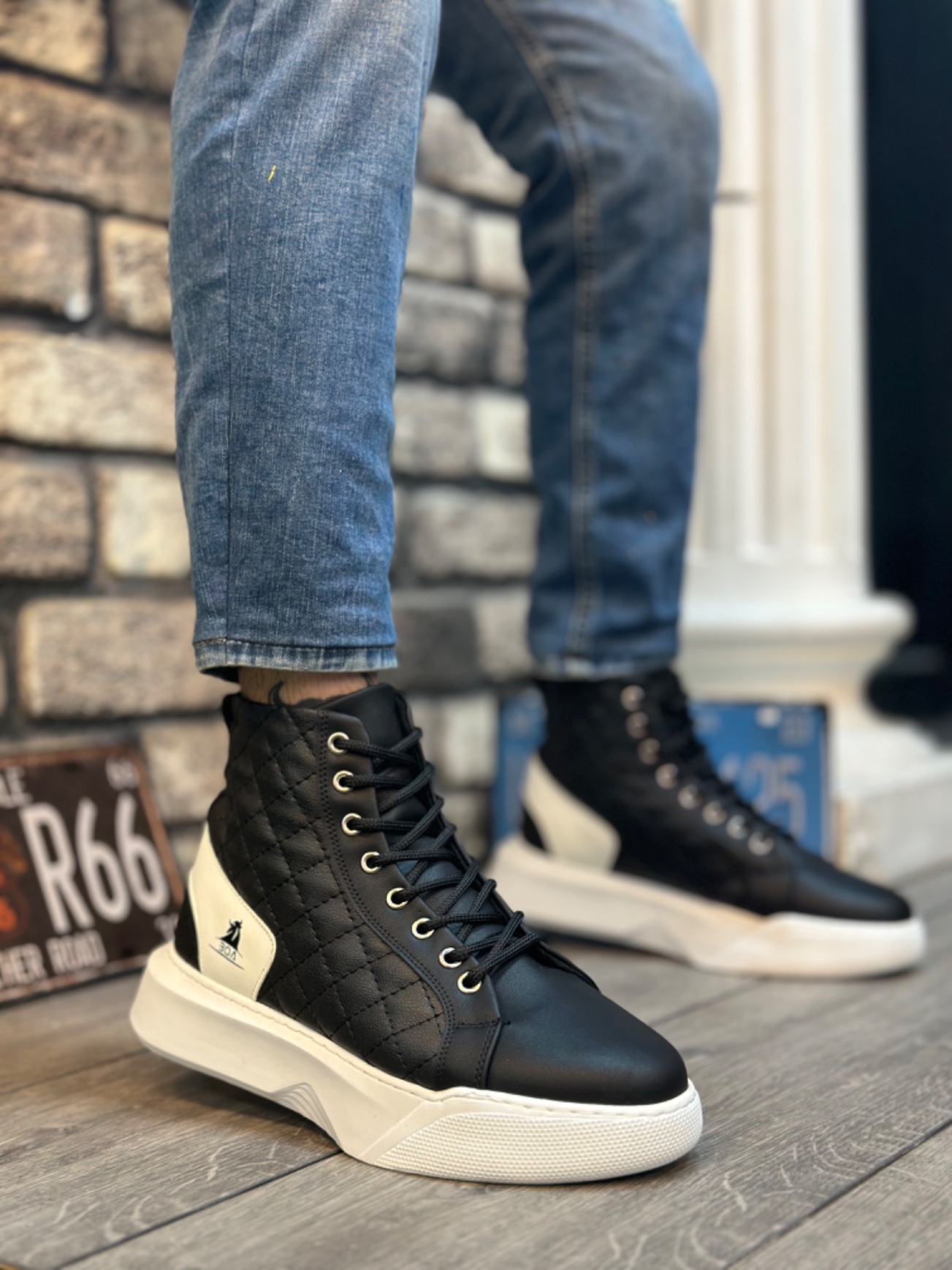 • MRG0159 Bağcıklı Siyah Beyaz Kapitone Erkek Yüksek Taban Spor Bot