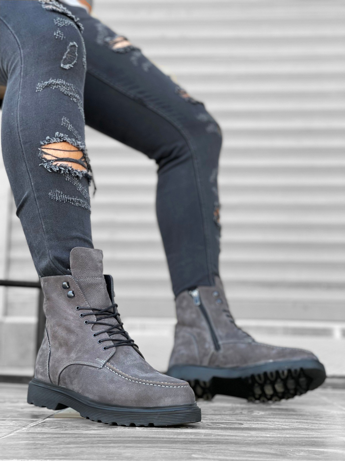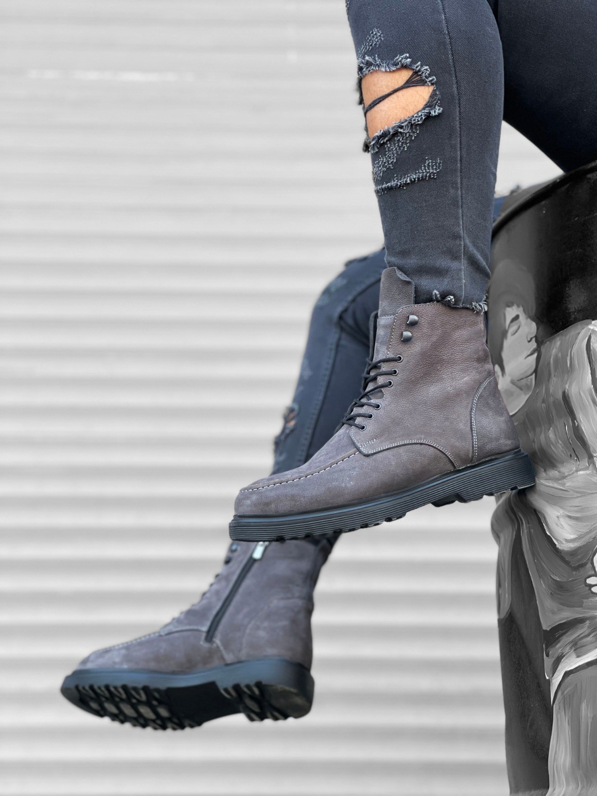 Tarz Erkek Ayakkabı Erkek Bot MRG0212 İçi Dışı Hakiki Nubuk Deri Gri Erkek Bot