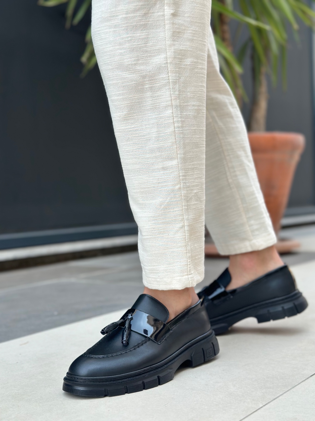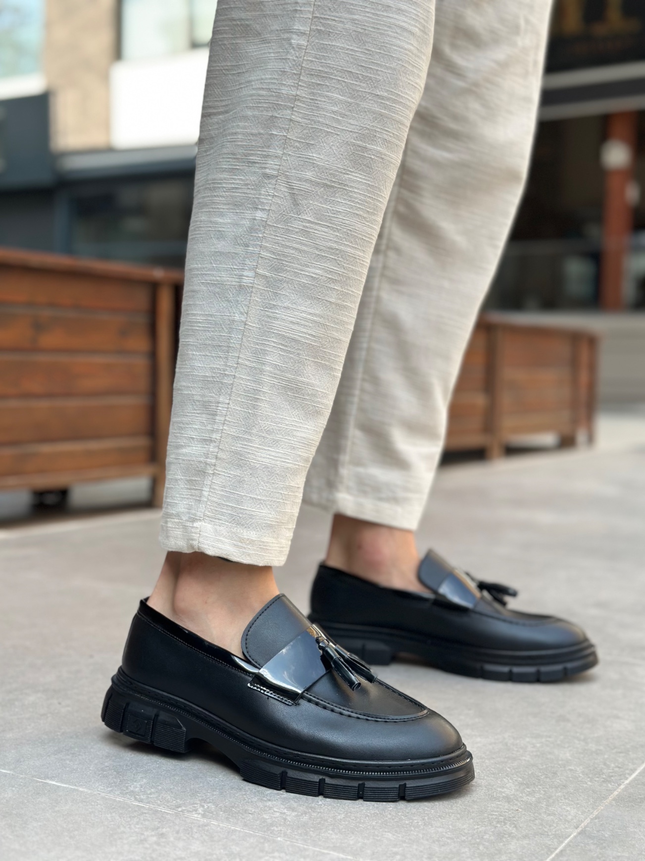 • MirgeShoes Siyah Püsküllü Erkek Klasik Ayakkabı Kalın SYH Taban MRG010602558