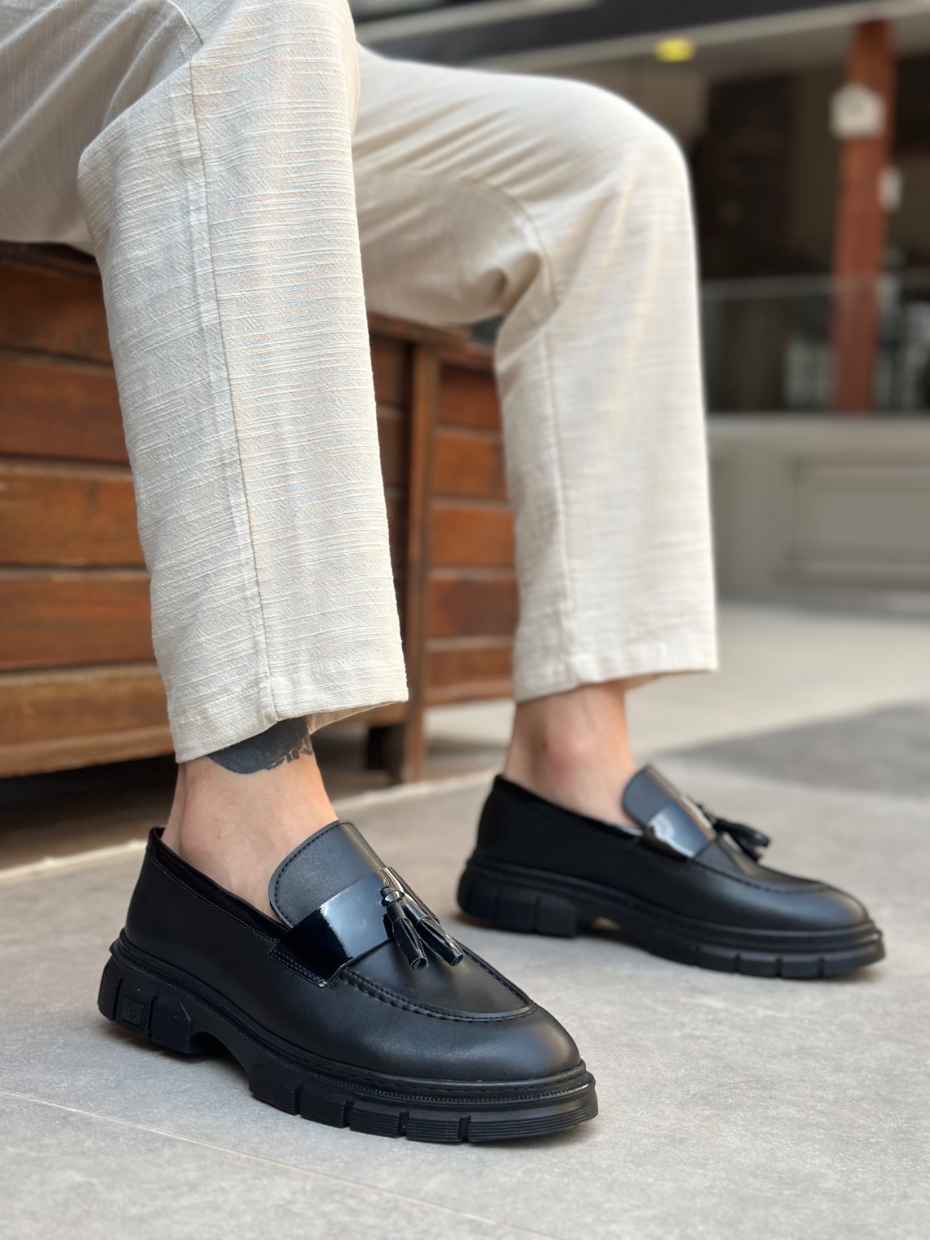 Tarz Erkek Ayakkabı Günlük Ayakkabı MirgeShoes Siyah Püsküllü Erkek Klasik Ayakkabı Kalın SYH Taban MRG010602558
