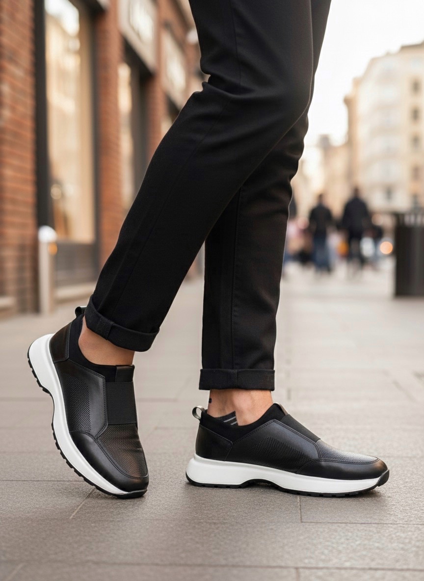 Tarz Erkek Ayakkabı Günlük Ayakkabı MirgeShoes Siyah Bantlı Erkek Casual Ayakkabı İçi Dışı Hakiki Deri Rahat Taban MRG010602562